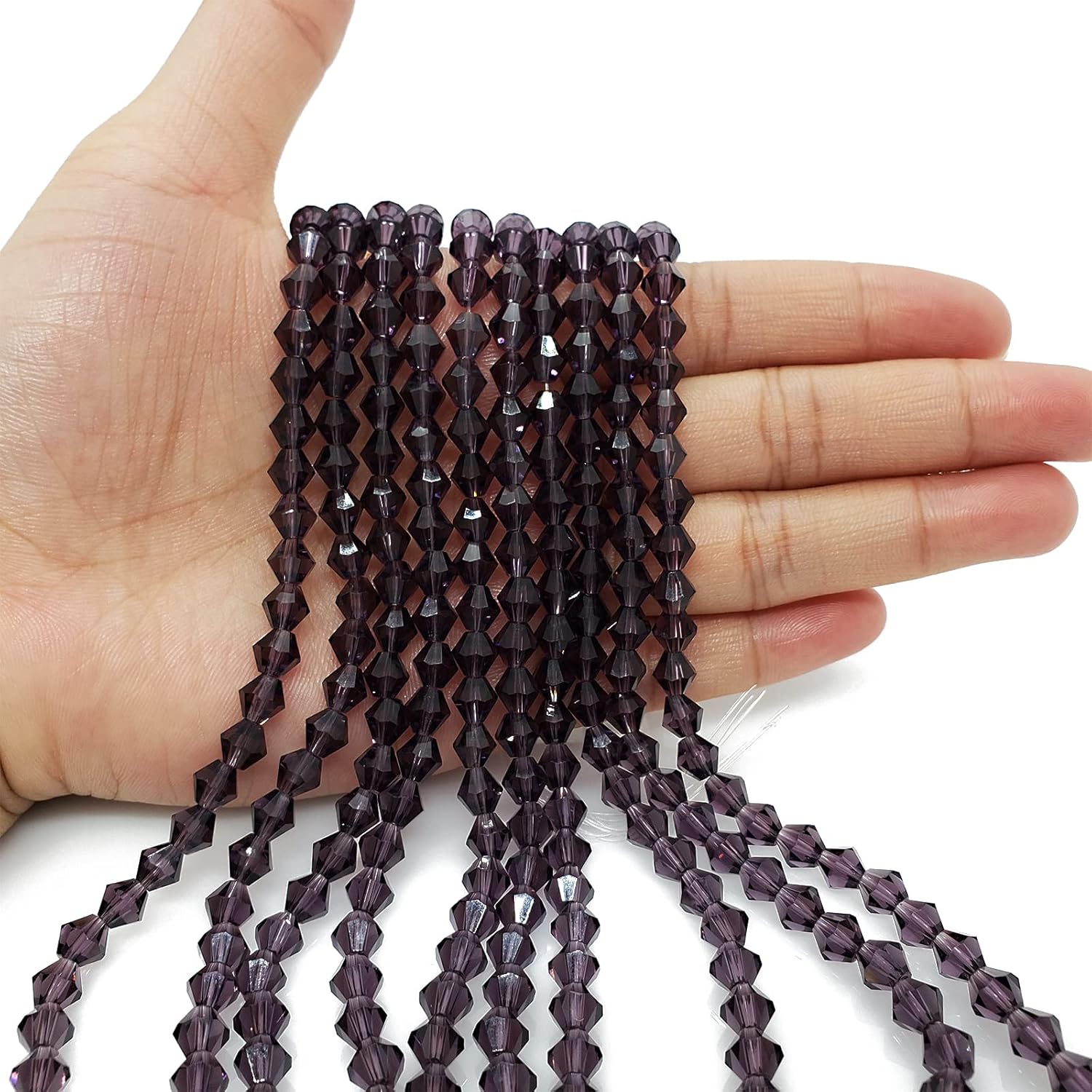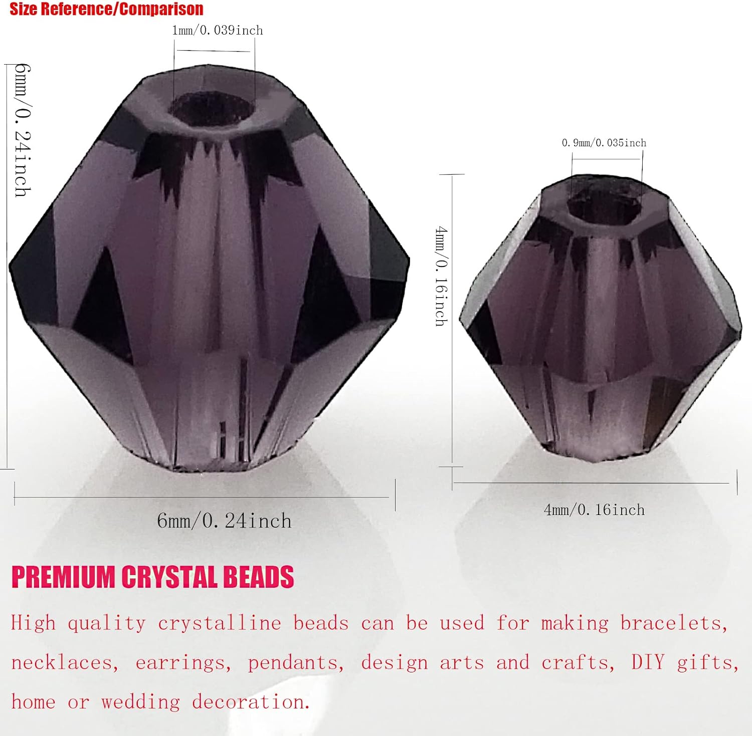 - 【PACKAGING and SIZE】 Package includes 450Pcs 6mm Bicone faceted crystal glass beads in violet color. Bead size: 6mm (or ~ 0.24 inch); Hole diameter ~ 1mm ( ~ 0.039 inch).In addition, we provide you with some stretchy cord and add an organza bag.Let your family and friends enjoy DIY happy time together.Kindly note: Please make sure this bead size meets your needs before placing an order,thank you.