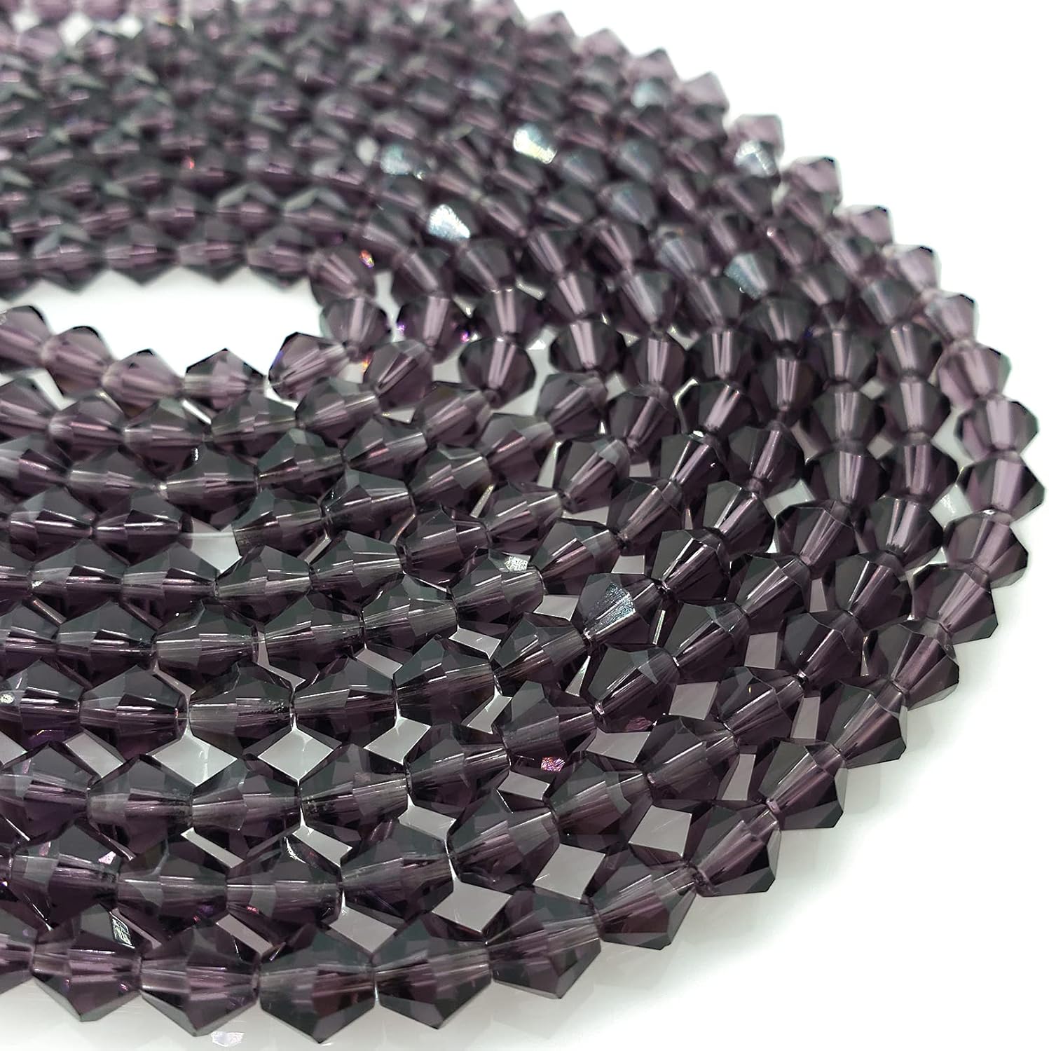 - 【QUALITY MATERIAL】Made of high quality crystal glass (synthetic quartz),odorless and non-toxic. Crystal with multi-faceted Bicone shape design will refract light,multi-faceted cutting, not easy to break or deform, durable, different light will show different colors and add a gorgeous glow to your jewelry or crafts. The actual color effect of the bicone beads is very good, rich, uniform and bright, better than the picture, worth trying.