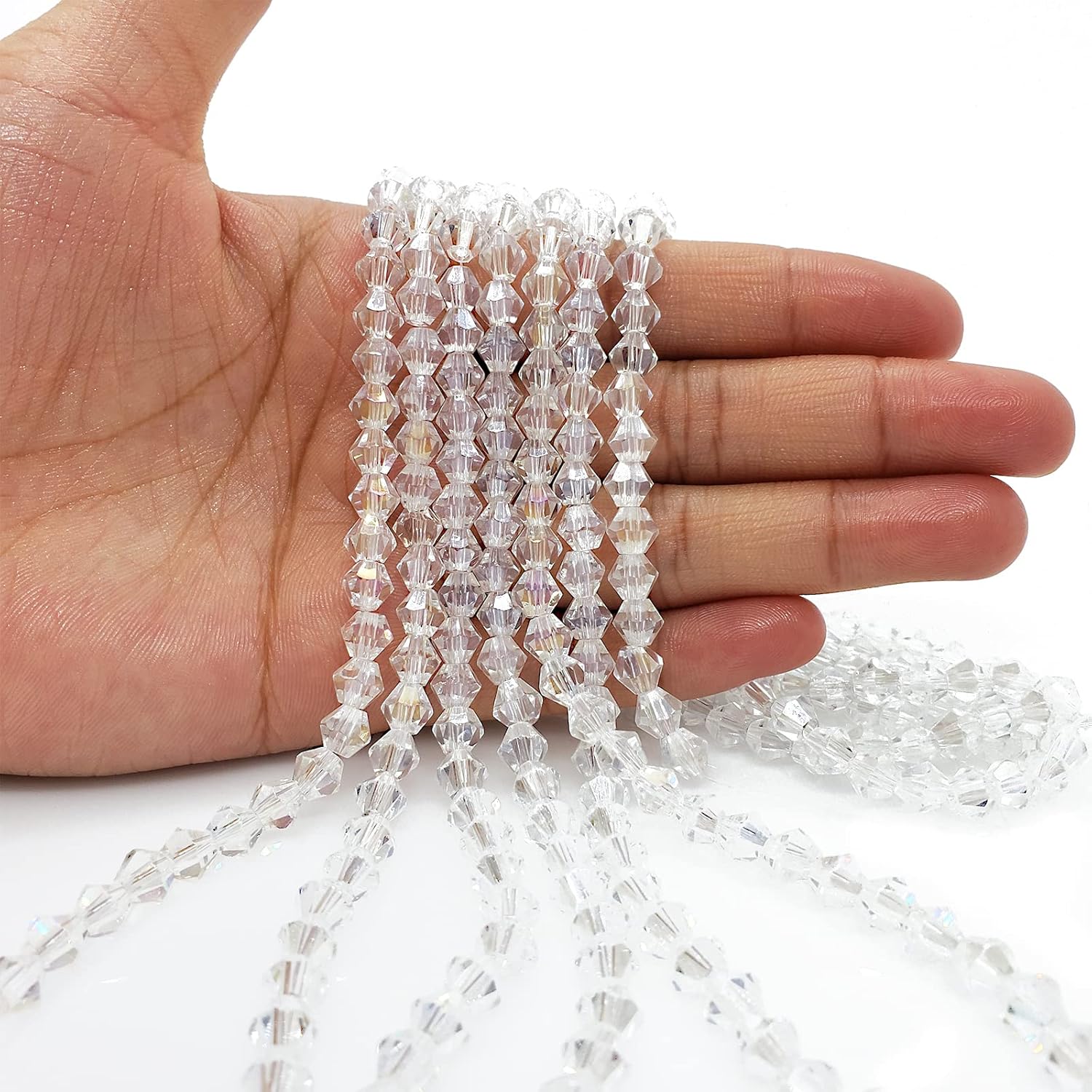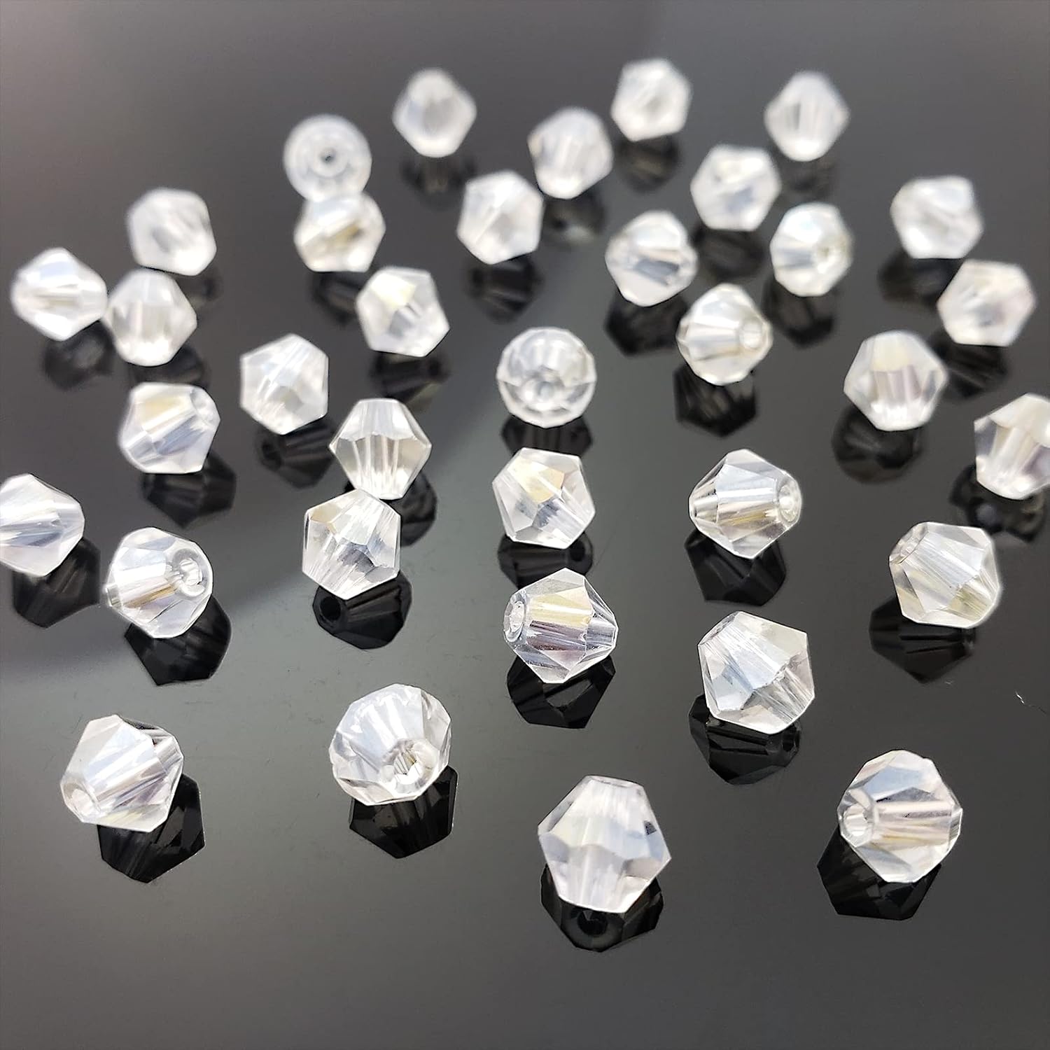 - 【PACKAGING and SIZE】 Package includes 450Pcs 6mm Bicone faceted crystal glass beads in white AB color. Bead size: 6mm (or ~ 0.24 inch); Hole diameter ~ 1mm ( ~ 0.039 inch).In addition, we provide you with some stretchy cord and add an organza bag.Let your family and friends enjoy DIY happy time together.Kindly note: Please make sure this bead size meets your needs before placing an order,thank you.