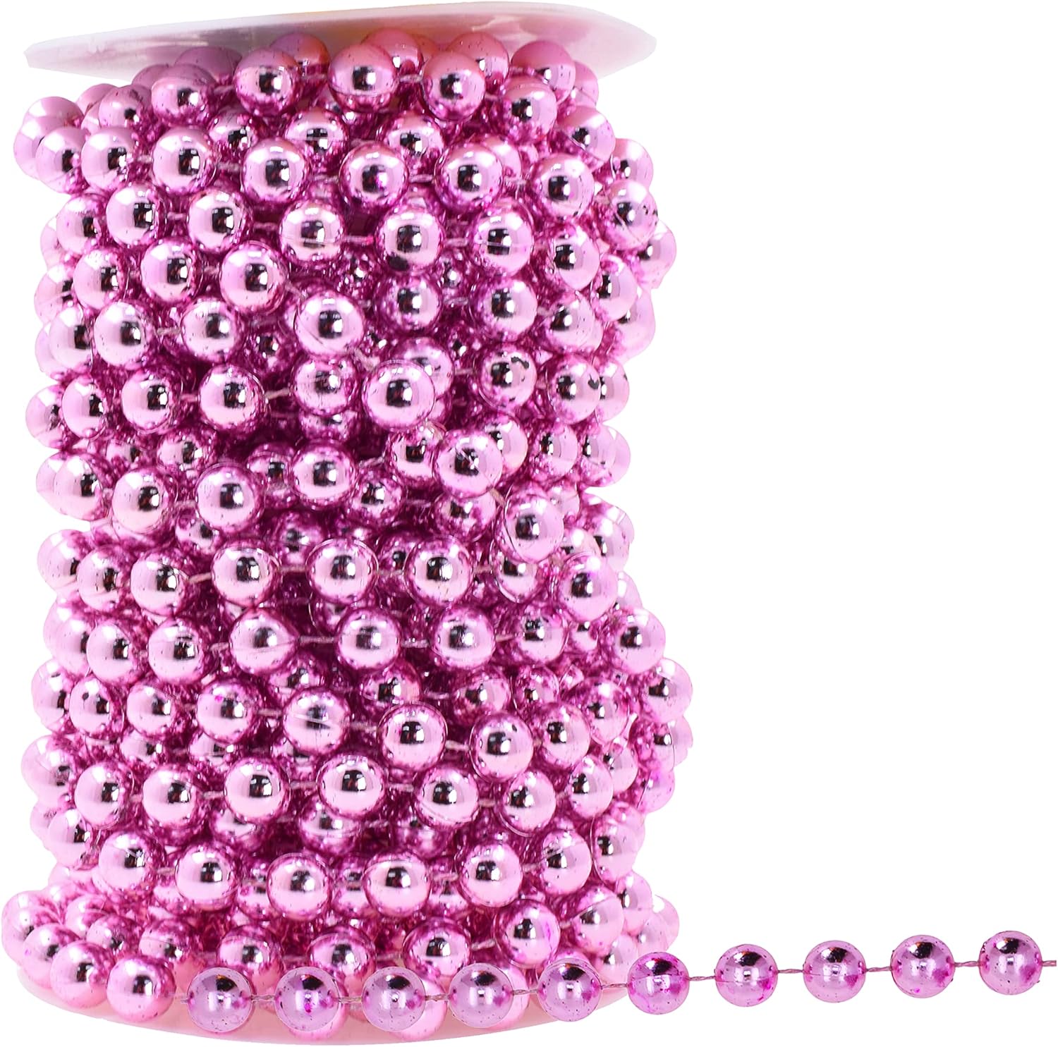 Mandala Crafts 10mm Faux Pink Pearl Beads Roll - 11 Yards Strand of Fake Pearls Chain Garlands Spool String for Christmas Tree, Wedding, Party, Vases, DIY Decoration
