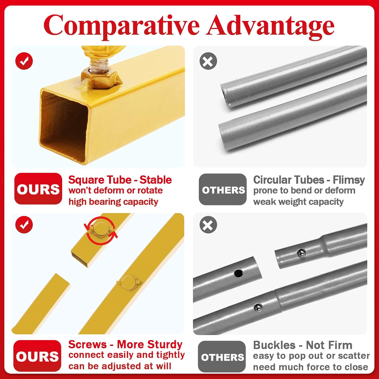 - 【Easy Assembly and Disassembly】With the upgraded square tube design, you can install it more easily. One person can easily do it in a few minutes. We also provide installation manual and installation video for your reference.