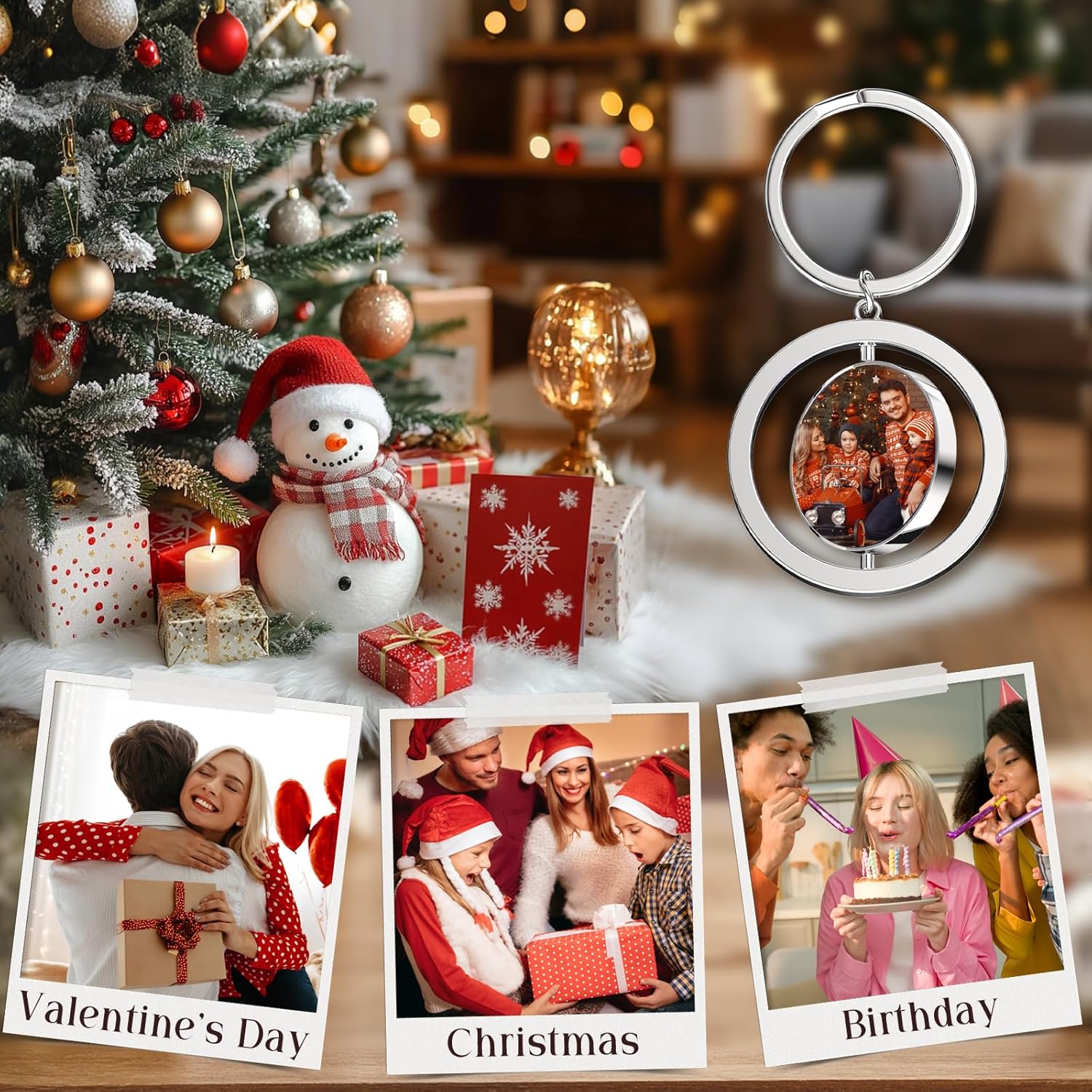 Personalized Custom Keychain with Picture - Turnable Double Sided Colorful Photo Key chains Memorial Gifts for Family Lover