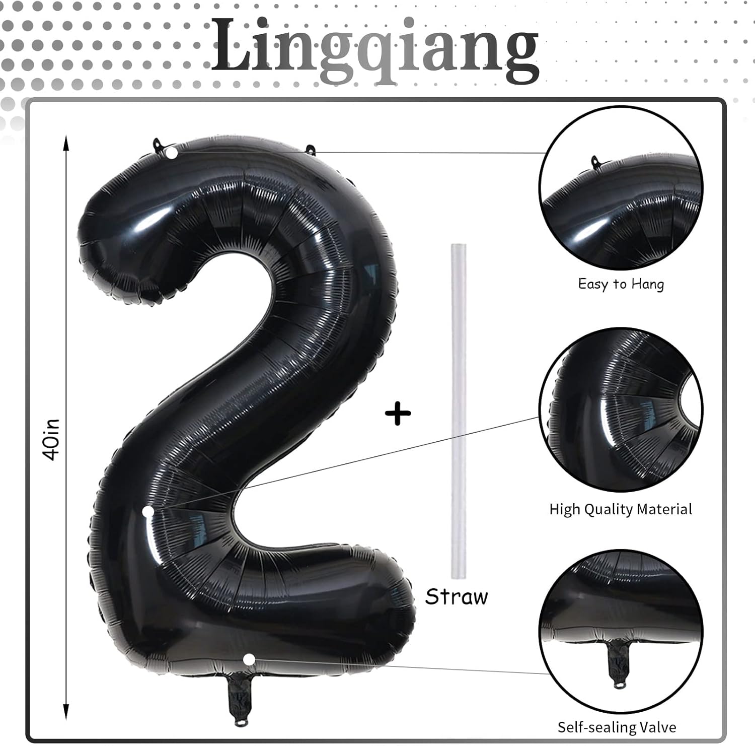- ๐ Black Number 2 Balloon ๐ - You will get 1pc 40 inch mylar foil number 1 balloon and 1pc straw. Perfect for 2nd 12th 20th 21st 25th birthday or anniversary party decorations supplies.