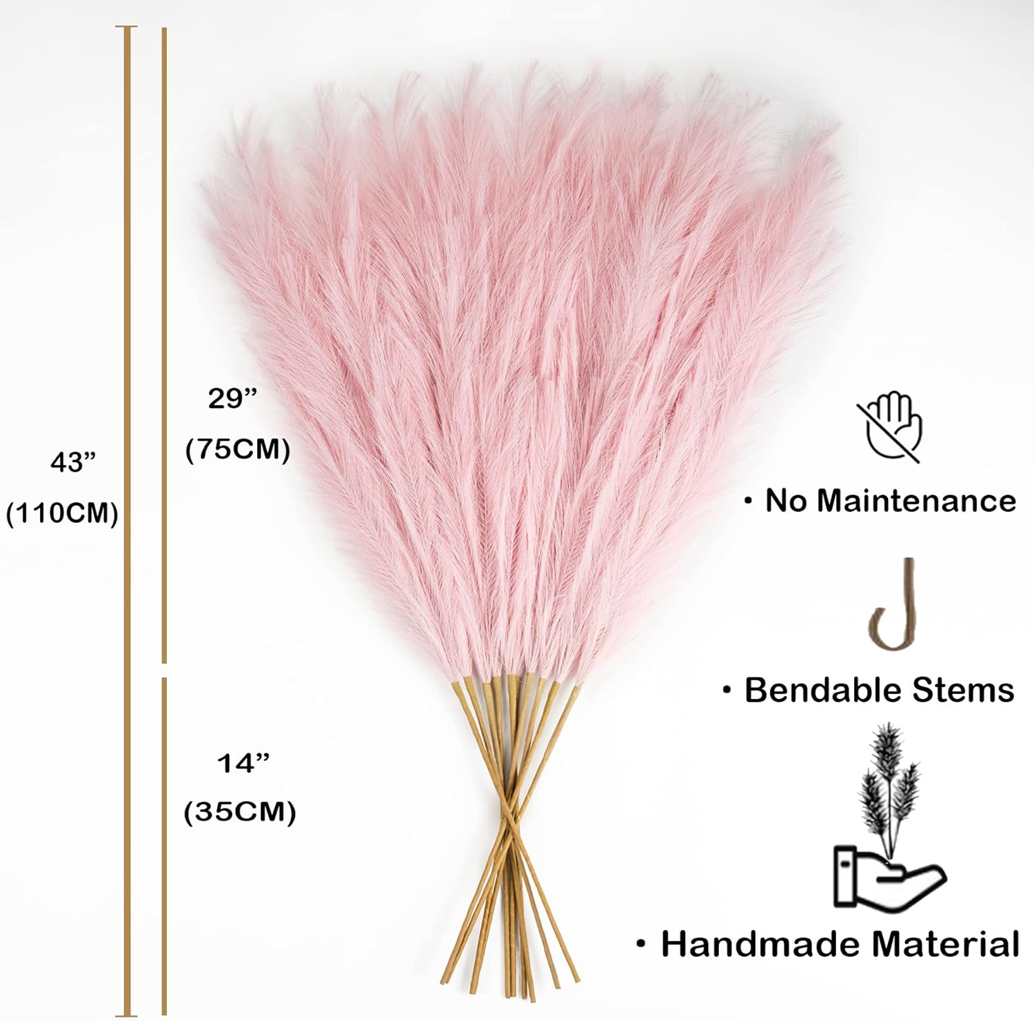 - Great Alternative for Real Pampas: Unlike dried pampas grass, our pompous grass does not shed like the real version, the long fibers on each stick are tied so strongly that they do not fall off. No allergens, no smell, without the maintenance cleaning and will last a long time