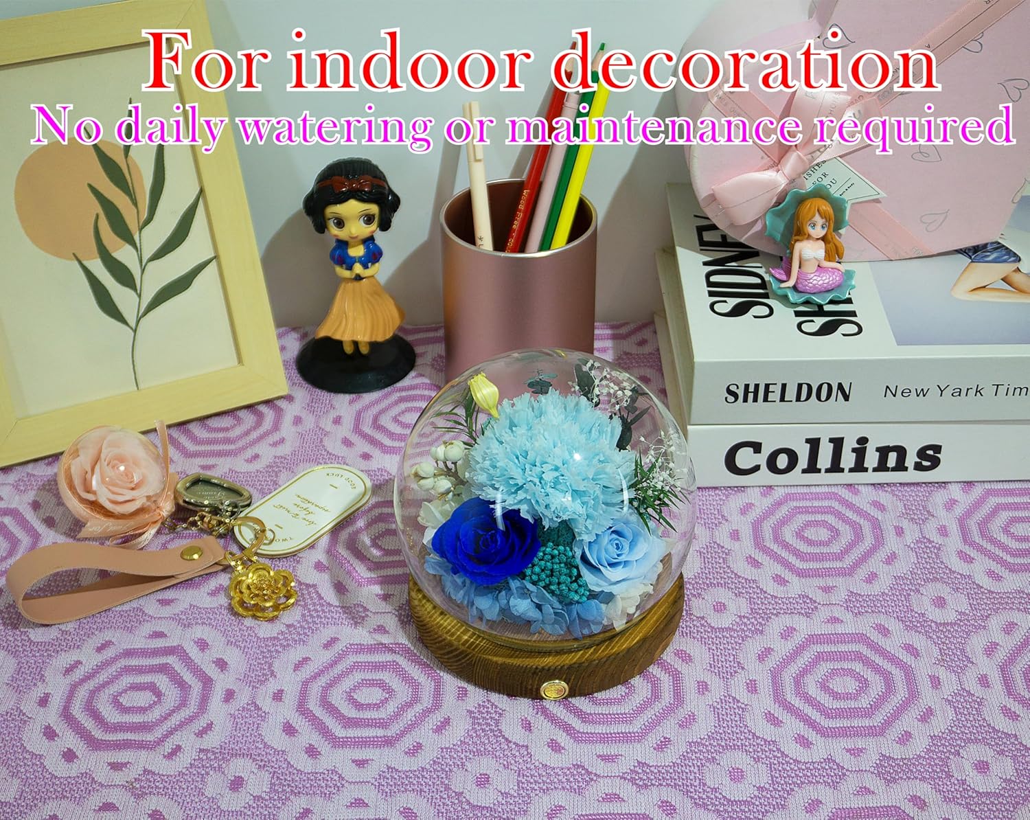 - ♥Please note♥:1. Due to the delicateness of natural flowers, opening the glass dome is not recommended as it can lead to unintended damage to the flowers. 2. Since these are real flowers crafted by hand and not mass-produced by machine, there may be slight variations in certain cases. 3. loose and incorrect battery insert will result in lights not turning on. If that's the case, simply remove the batteries and reinsert them correctly. 4. We've recently made new improvements to our products for you. For more details, simply go to the bottom of this page.