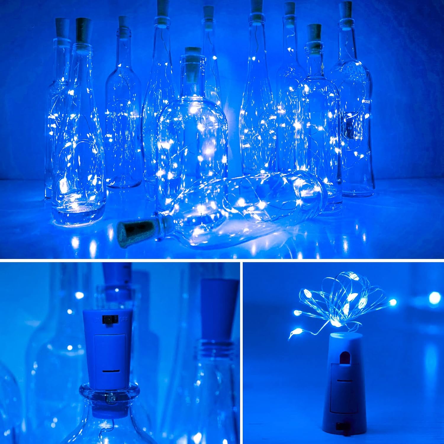 - Universal Cork Shape &Easy to Use : The size fits most bottles. Cork diameter: 0.65 inch to 0.9 inch, fit most wine bottles, whiskey bottles, beer bottles and other liquor bottles.Pull out the insulation strip, put the light strings into bottles, and switch the button to turn on/off the light.