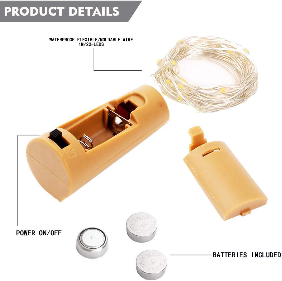 - Absolutely Flexible Copper Wires: uneasy to tangle compared to other super thin copper wires, StarryMine Bottle Lights 12 Pack 20LED Cork Lights with bulky copper wire that allows you to DIY them as any shape you want.