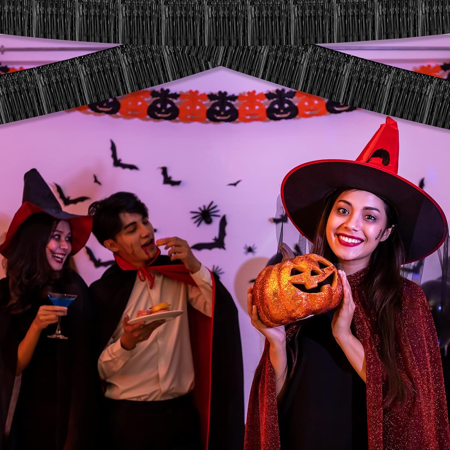 10 Pack 10 Feet Foil Fringe Garland Metallic Tinsel Streamers Banner Wall Hanging Curtain Backdrop for Parade Floats, Bachelorette, Wedding, Birthday, Halloween, Christmas Party Decorations(Black)