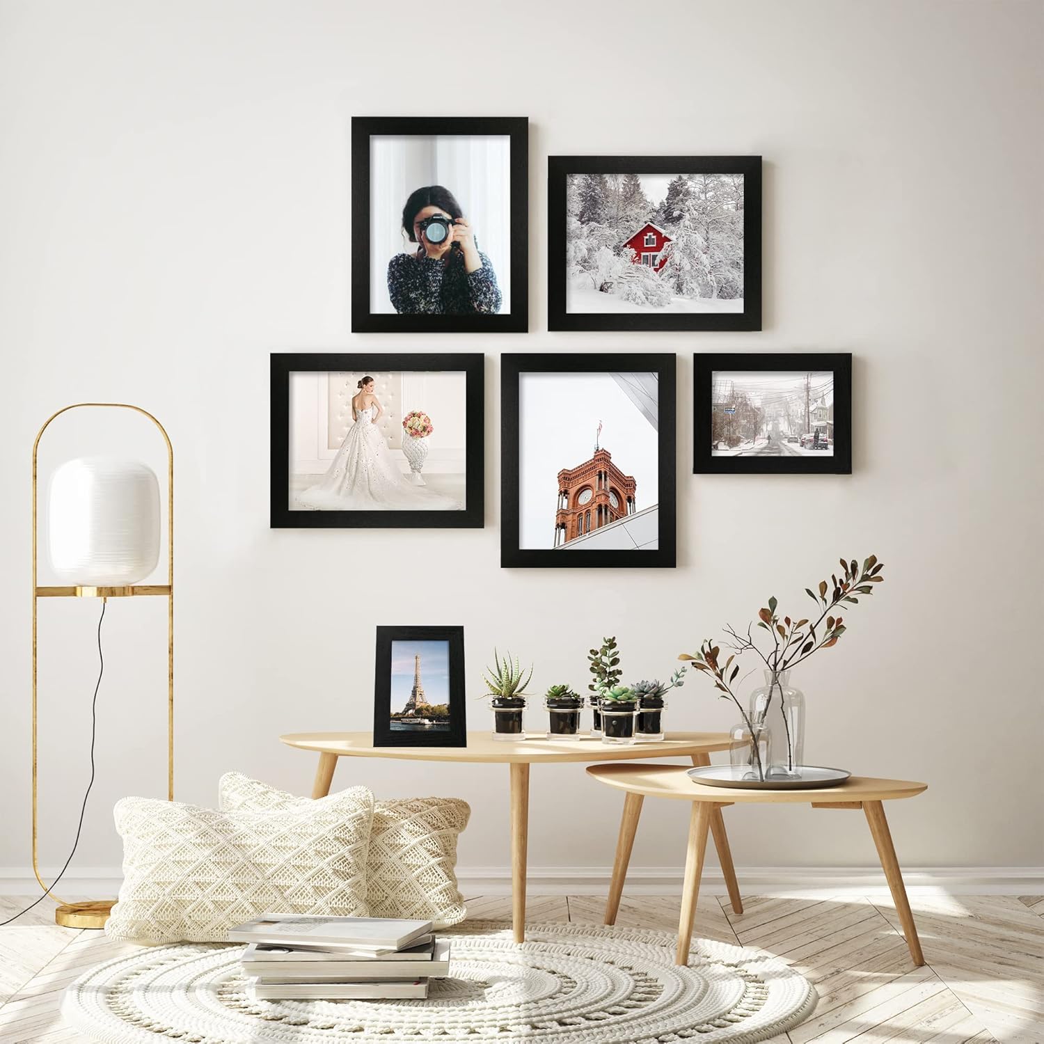 - Material: These picture frame set made of MDF are very durable and the Real Glass with high clarity, protecting your photos from dust, moisture and scratches.