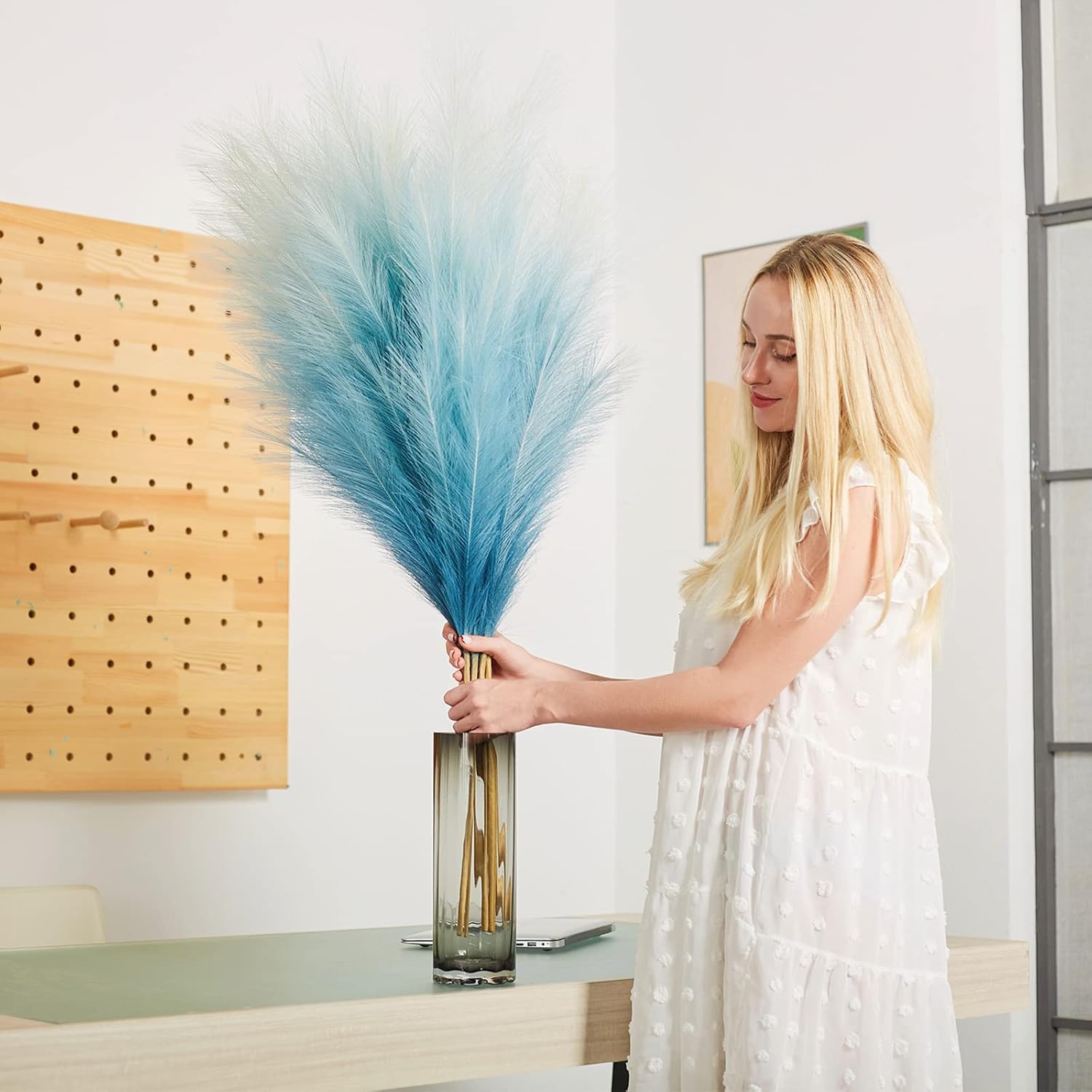 - Minimalistic and Elegant Decor Piece: Really nice faux pampas grass for home decor, display in your hallway, kitchen, living room, bedroom, front room, dining room or entry way... any space.They are also a great addition to wedding, flower arrangements, lifestyle photography, party, bohemian decorate and etc
