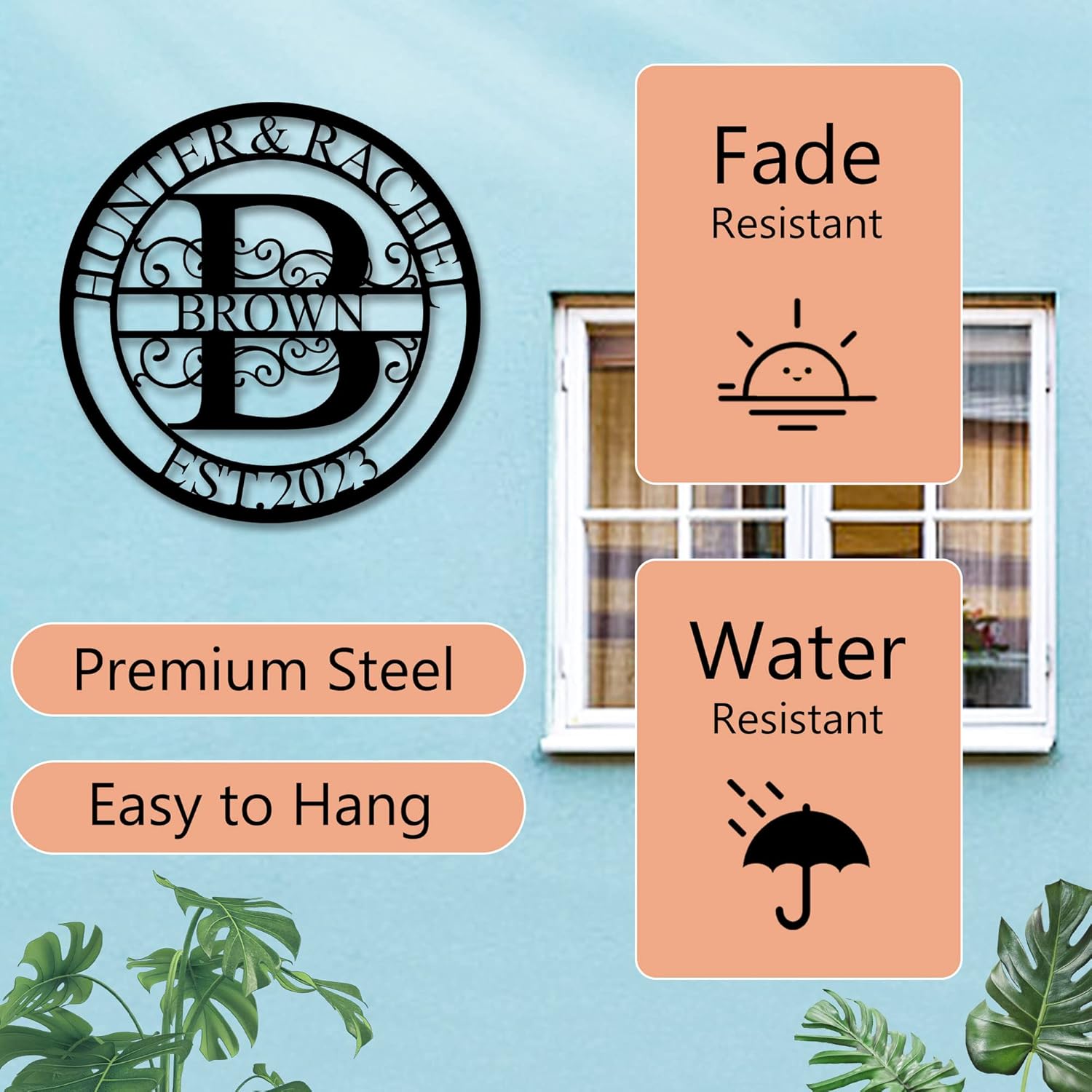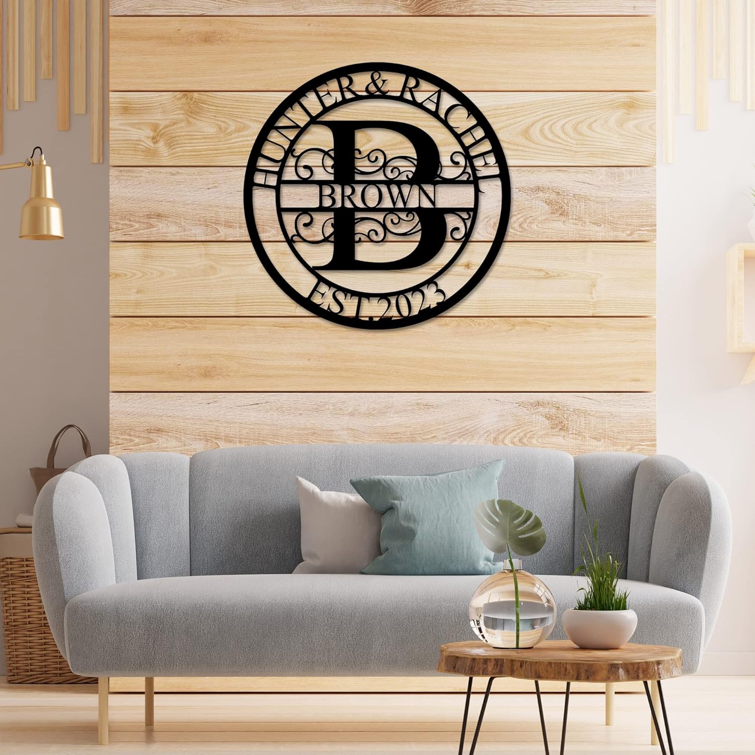 - ⭕ UNIQUE DESIGN: This custom metal name sign design is very unique. A simple circular design with the initials of the last name for the background. Add a family name and couple's name with the established date, to create a perfect family sign.
