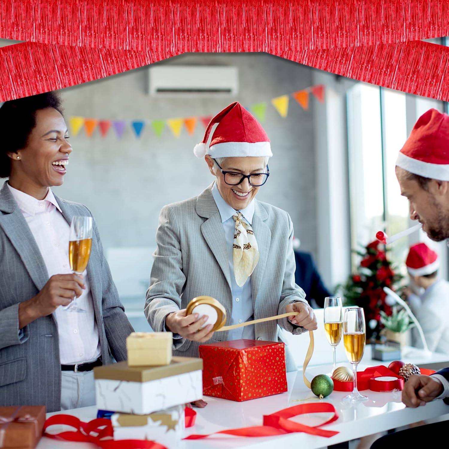 10 Pack 10 Feet Red Foil Fringe Garland Metallic Tinsel Streamers Banner Wall Hanging Curtain Backdrop for Parade Floats, Bachelorette, Wedding, Birthday, Halloween, Christmas Party Decorations