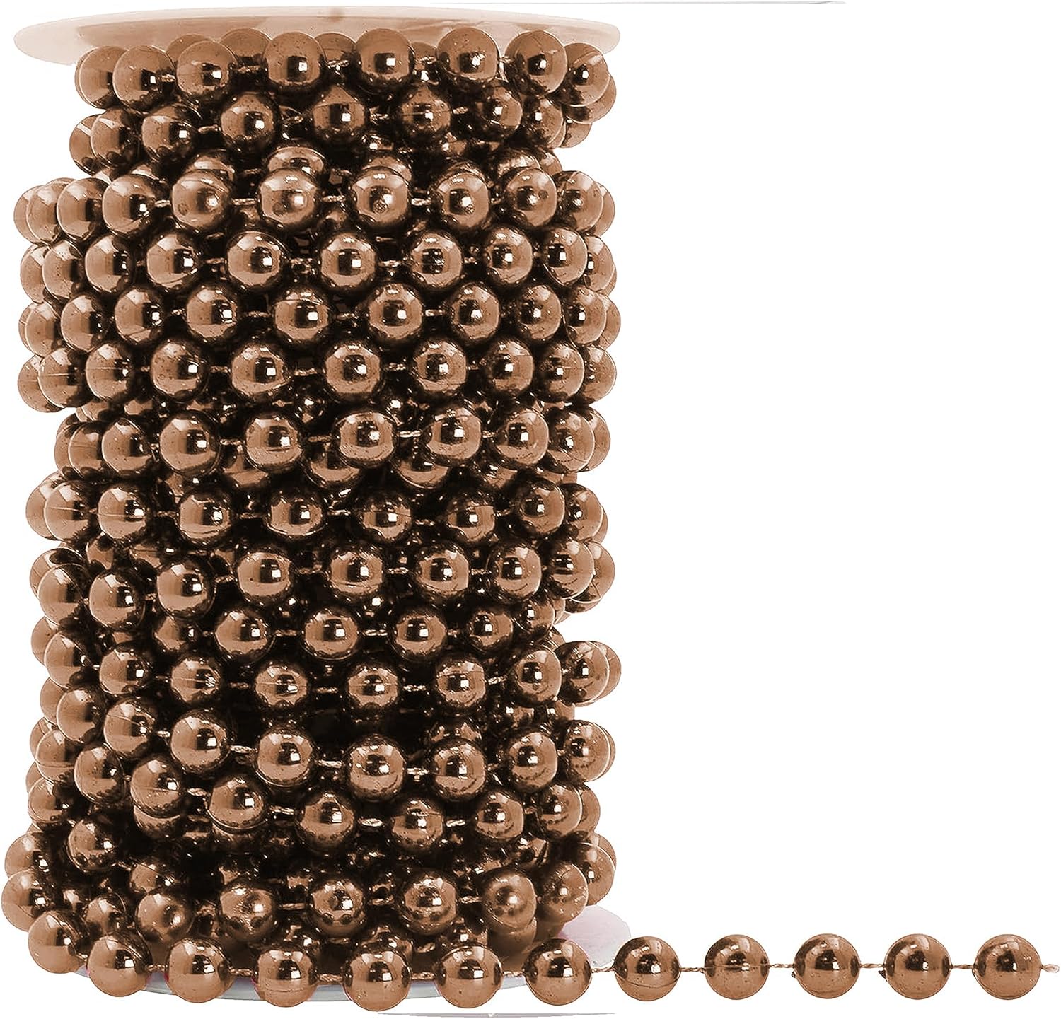 Mandala Crafts 8mm Faux Brown Pearl Beads Roll - 20 Yards Strand of Fake Pearls Chain Garlands Spool String for Christmas Tree, Wedding, Party, Vases, DIY Decoration