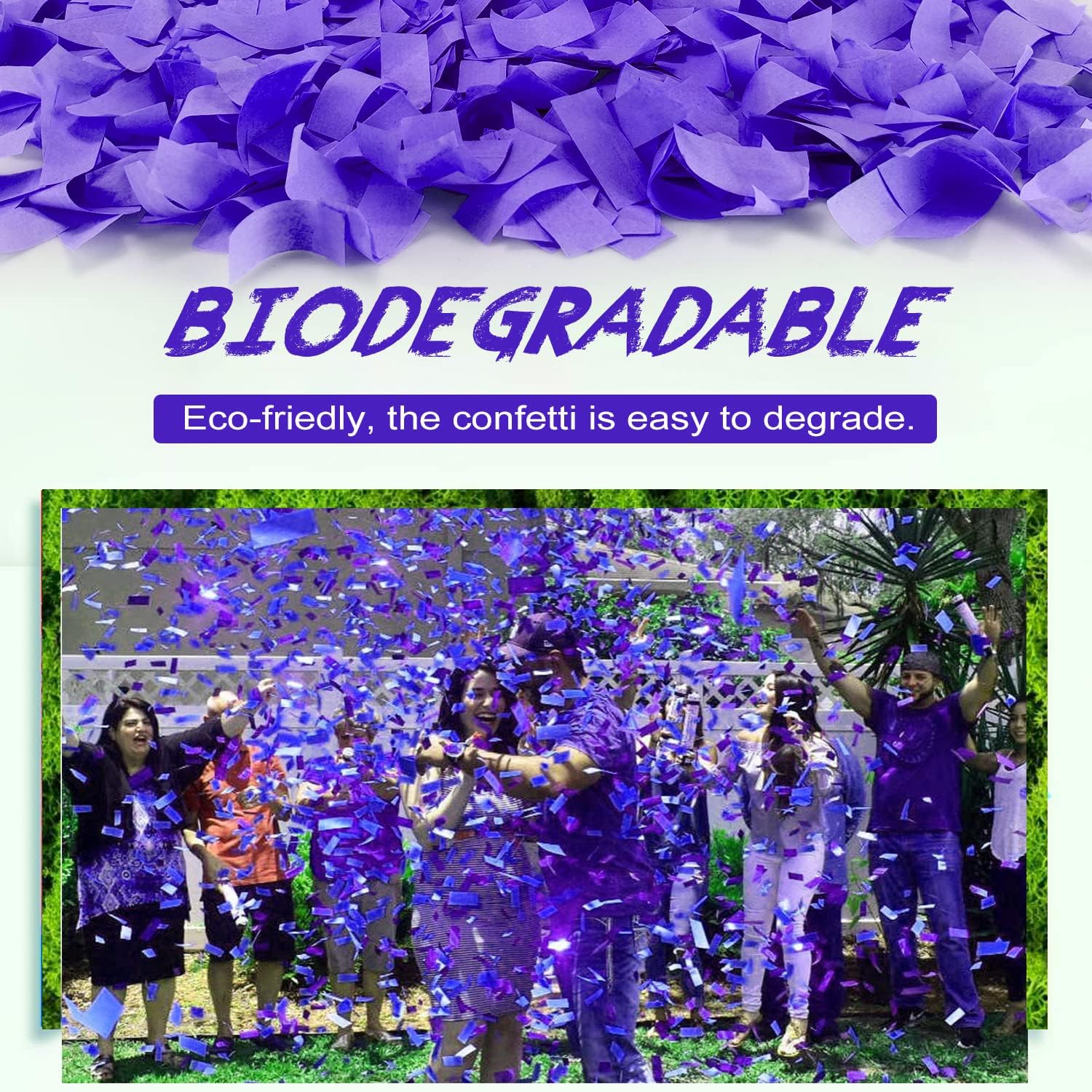 - Happy Celebration: - Each of our Confetti Cannons contains about 3 oz. More reflective violet confetti than any other similarly sized product on the market. You're sure to wow friends and family and capture awe-inspiring moments in the air in beautiful vibrant colors.