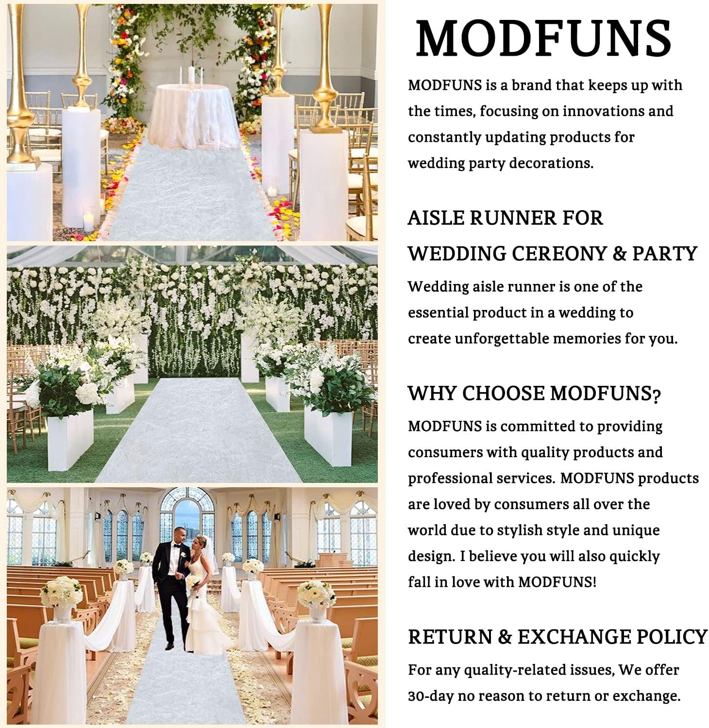 - ❤Buy With Confidence - Bride Aisle Runner: MODFUNS is a trusted brand with the professional team. If you have any questions, please kindly contact us, we will solve you issues until you’re satisfied. NOTE: Hand wash with cold water recommended with a walkway carpet for wedding. Or machine wash in the gentle cycle with a laundry bag. No bleach.