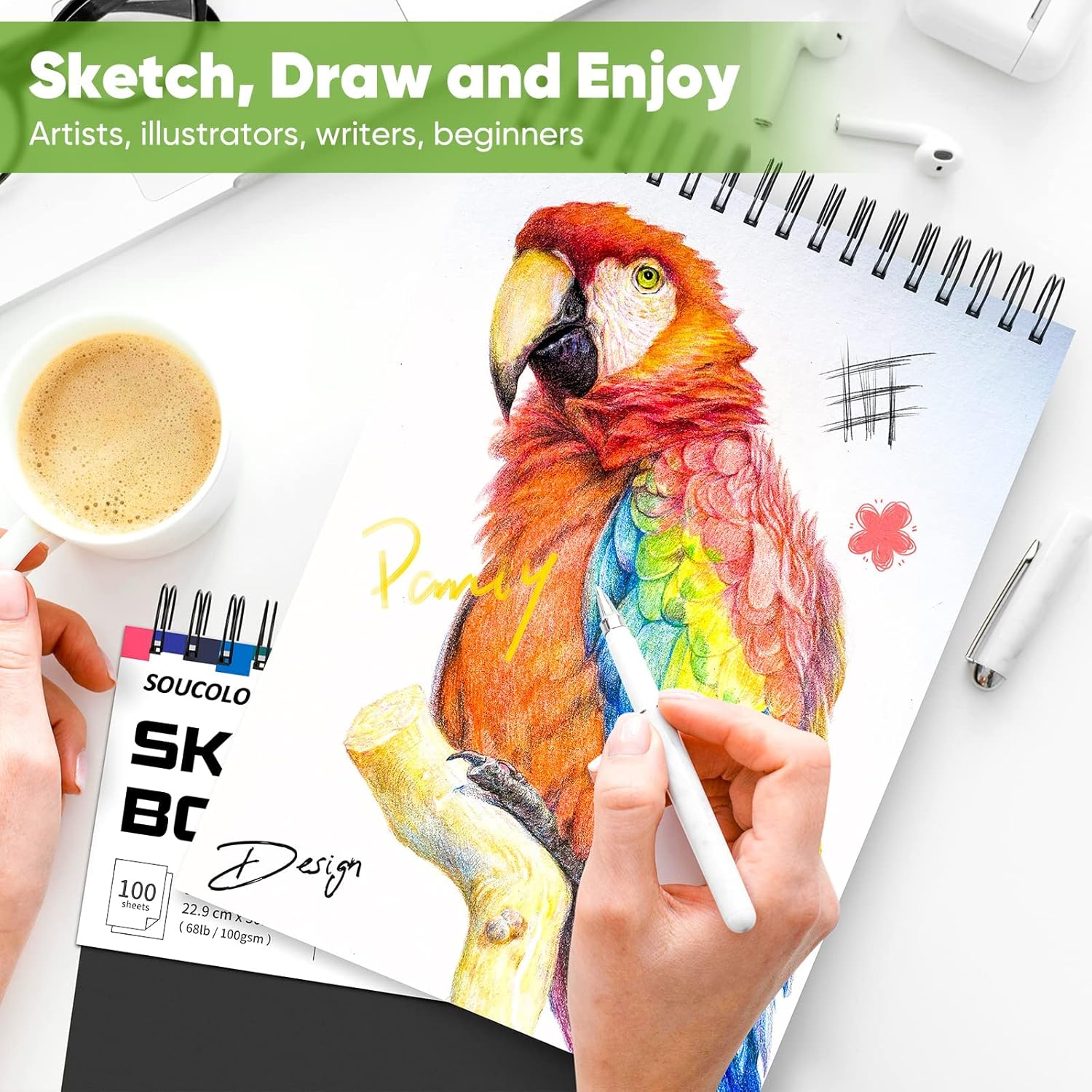- 【High-quality sketching drawing book pad】This sketching book paper is acid-free and PH neutral with standard-weight 68lb/100gram, which is much thicker and better than the similar sketchbook from other brands. It prevents bleeding, smudging and feathering for clean artwork. Keep your artwork looking great for years to come!