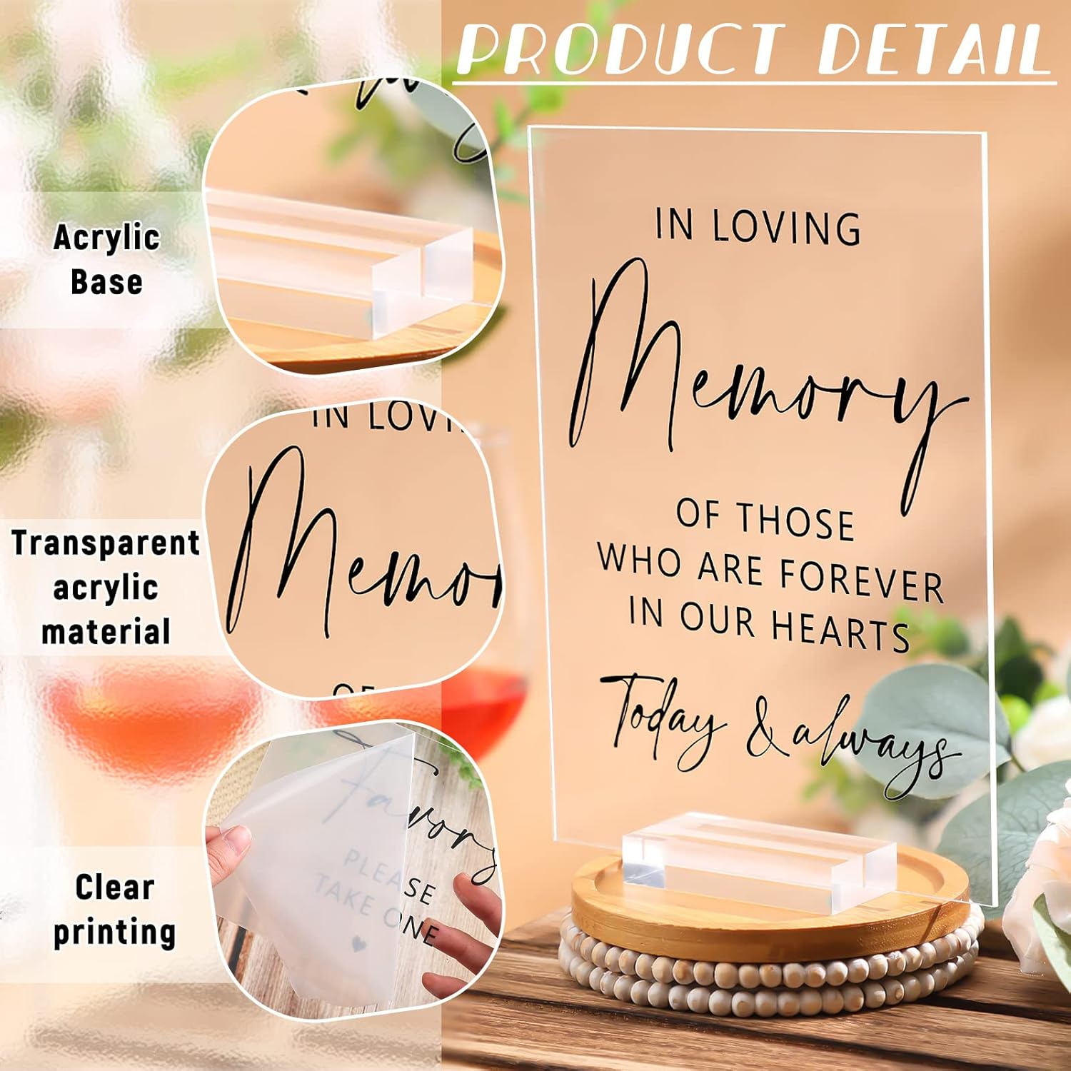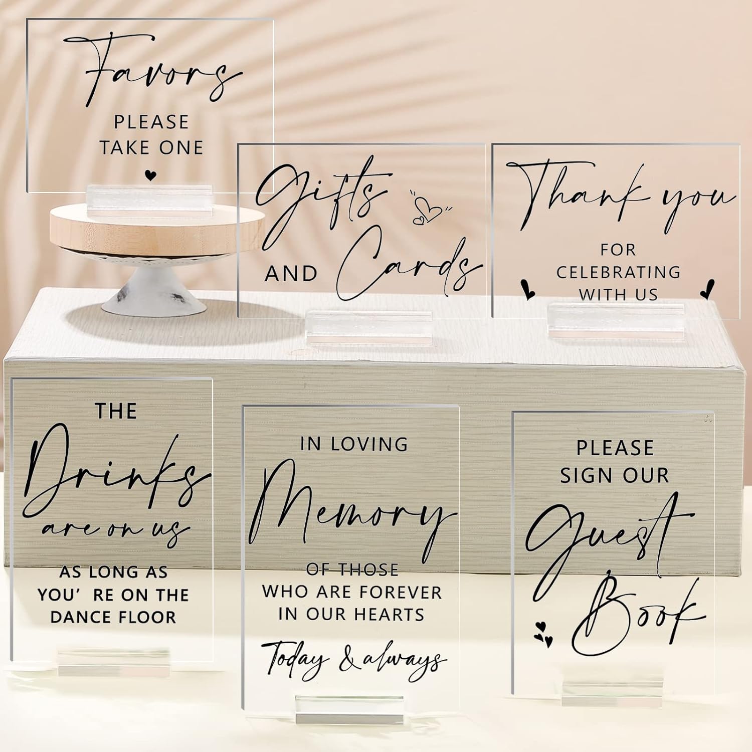 Weysat 6 Pcs Clear Acrylic Wedding Signs for Reception and Ceremony 5'' x 7'' Wedding Signage with Stand in Loving Memory Table Decorations Cards and Gifts Guestbook Reserved Table Sign(Classic Style)