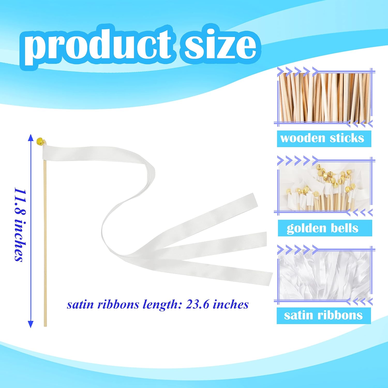 60 Pieces Wedding Colorful Ribbon with Bells, Party Ribbons Streamers Sticks Magic Wish Fairy Wand for Wedding Party Holiday Activities Favors (White-60)