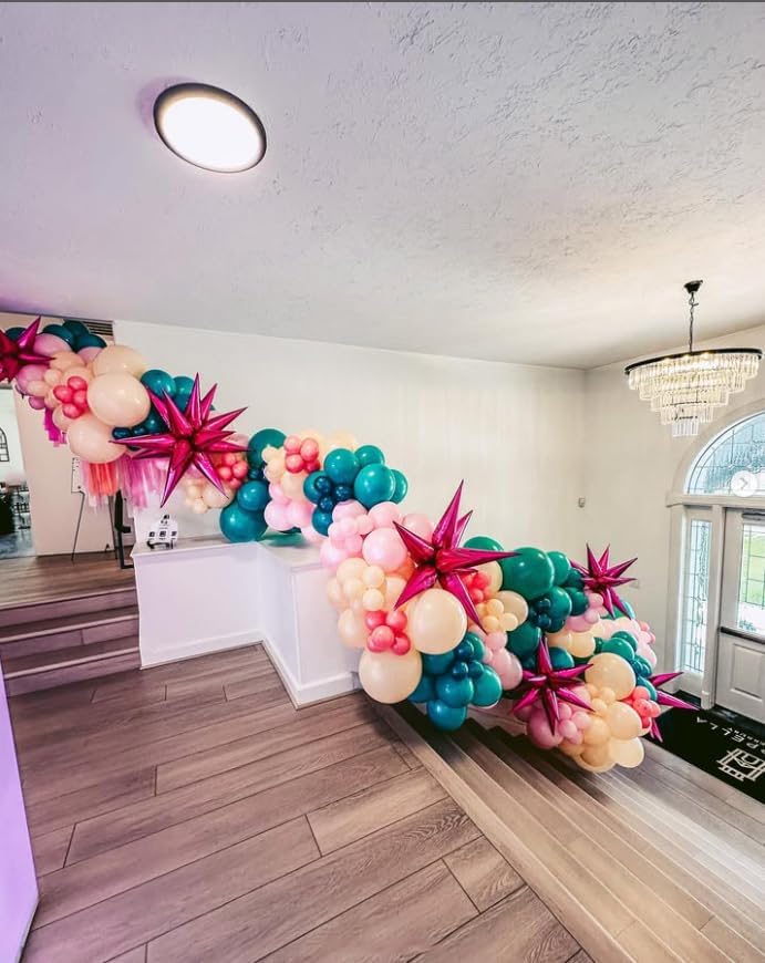 - Packing list:balloon:36pcs cone shaped balloons (12pcs cone balloons can make 1pc explosion star balloon = 3 pcs 3D foil explosion stars ) + accessories:1pc ribbon