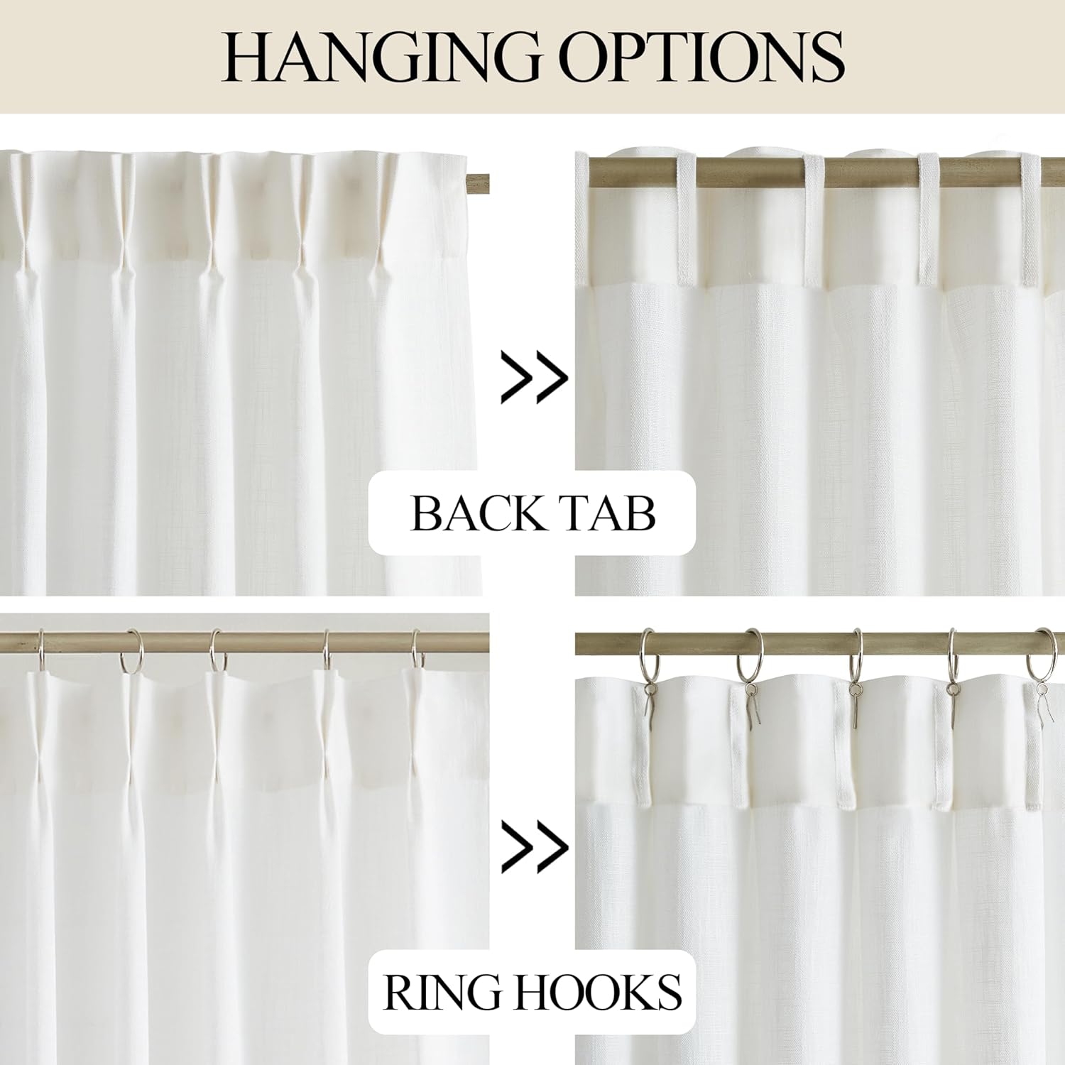 - Pinch Pleats Design:Each white curtain panel with 7 pinch pleats generates modern and luxury feel.Hanging these pinch pleat curtains to elevate your windows and increase the aesthetic value to any spaces,bedroom,living room,nursery,office,etc.