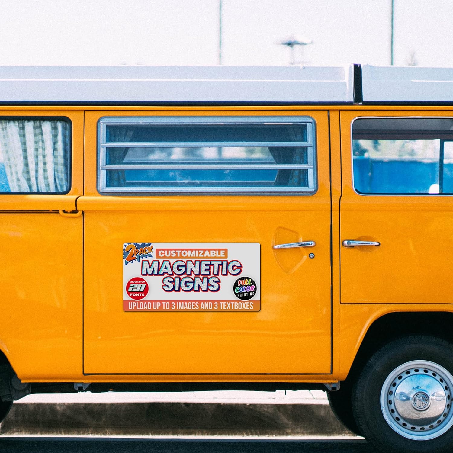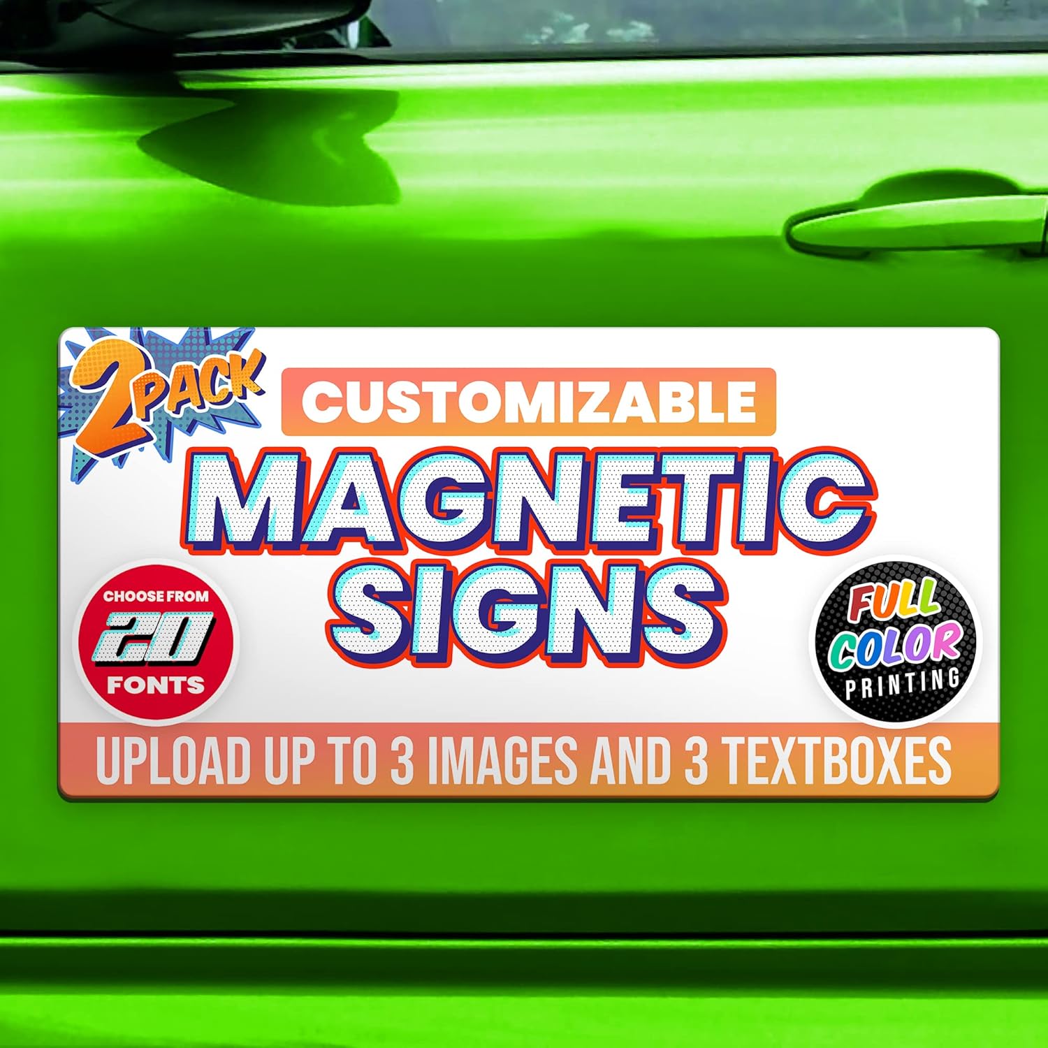 - STRONG AND DURABLE - With our customizable car sign, you will be able to take advantage of a new way to advertise your brand or business. These business magnets for cars, trucks and trailers are built to last. Our custom vinyl banner is weatherproof and will surely last long through all kinds of weather conditions.