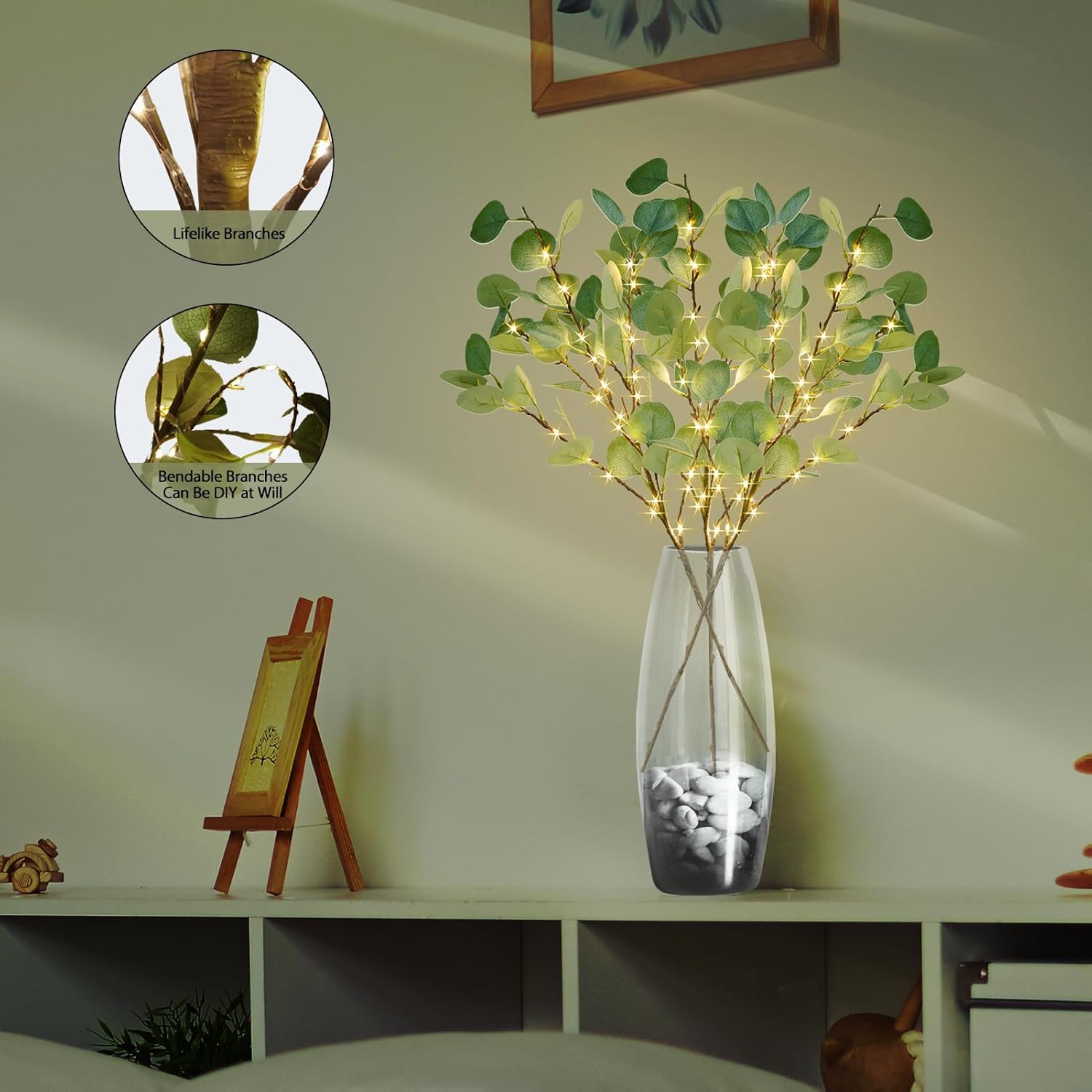 - 🎄 【Suitable for Various Scenes】When the lights are not on during the day, the lighted eucalyptus branches can be used as decoration and can be placed in many places, such as the living room, study, bedroom, dining room, etc. When the lights are on at night, the light is soft and not harsh and can be used as a night light to accompany you to sleep. This glowing branch light is also perfect for weddings, Christmas, New Year, and party decorations, it can also be used outdoors
