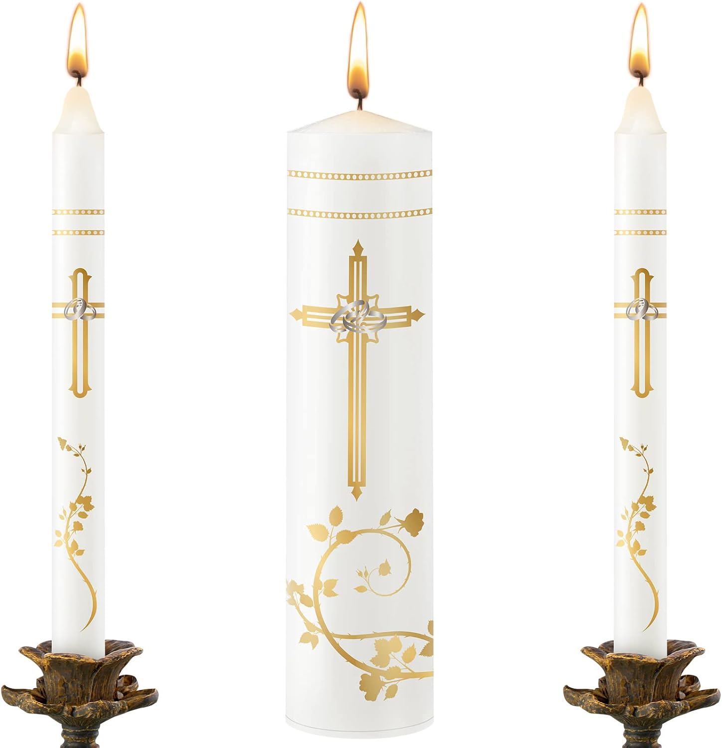 Frienda Unity Candles for Wedding Ceremony Set Wedding Unity Taper Candles Catholic Religious Ceremony Accessories(Retro Style)