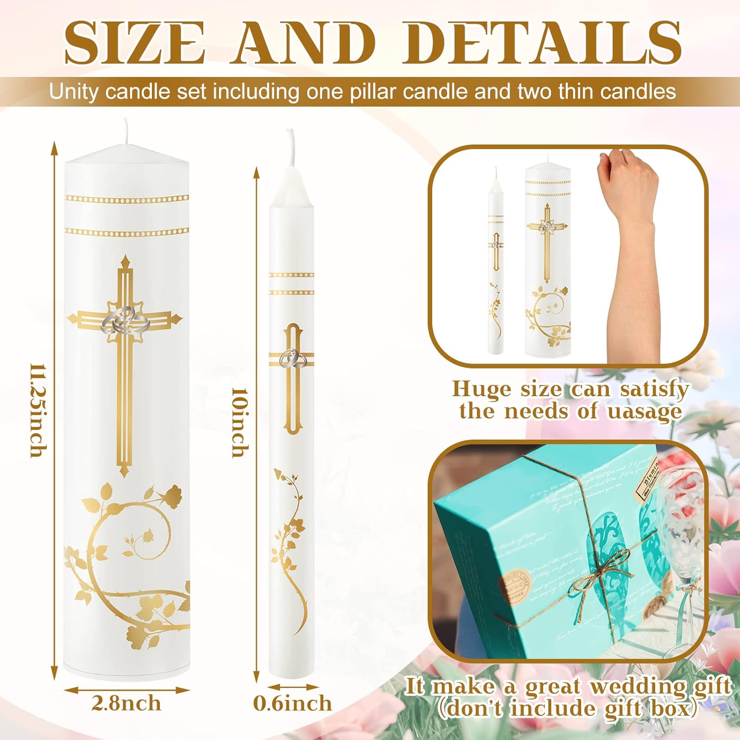 - You Will Get: the set consists of 3 wedding candles, 2 pcs of 10 inches high, and 1 pc of 11.2 inches high, which can have a long burning candle, suitable for the wedding table centerpiece; Special instructions: the products not include candlesticks