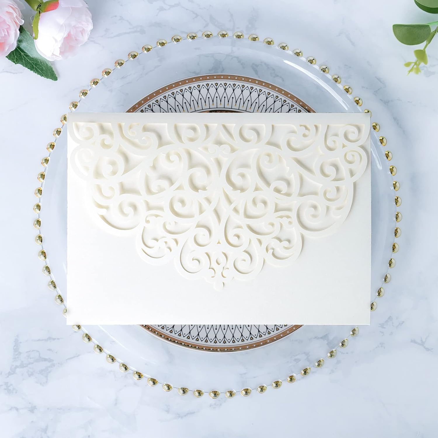 - 🥂【Package included】20 * Ivory Laser Cut Invitations POCKETS + 20 * Cream White Envelopes