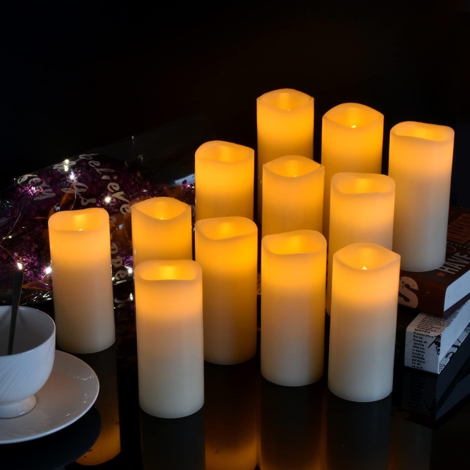 - BEAUTIFUL & REALISTIC LOOK: These amazing flameless candle lights have a genuine wax pillar body and LEDs that give off warm, natural-looking light. Your friends probably won't even be able to tell the difference between these and real candles without taking a better look!able from traditional burning candles. And for the wick of it is made from led light, you do not need to worry about fire hazards, smoke, messy dripping wax or stained tablecloth. It will bring you a perfect night.