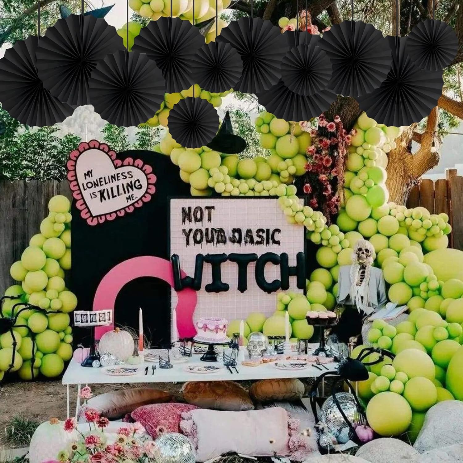 HQZ Black Party Hanging Fans DIY Set - 12pcs Set Pinwheels Fan DIY Paper Craft for Wedding, Birthday, Christmas Party Decoration