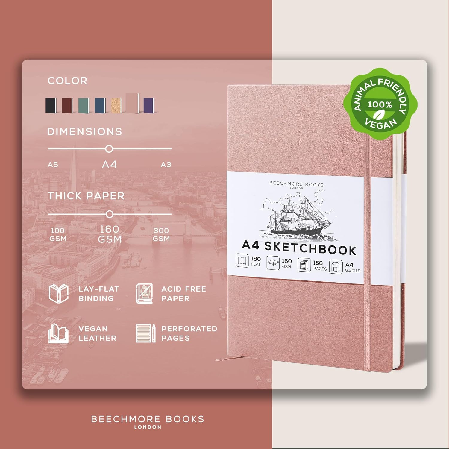 • Elegant & Durable Construction - Built to last with a robust vegan leather hardcover and thread-binding, this A4 large sketchbook combines timeless British-inspired design with lasting reliability for your artistic vision.