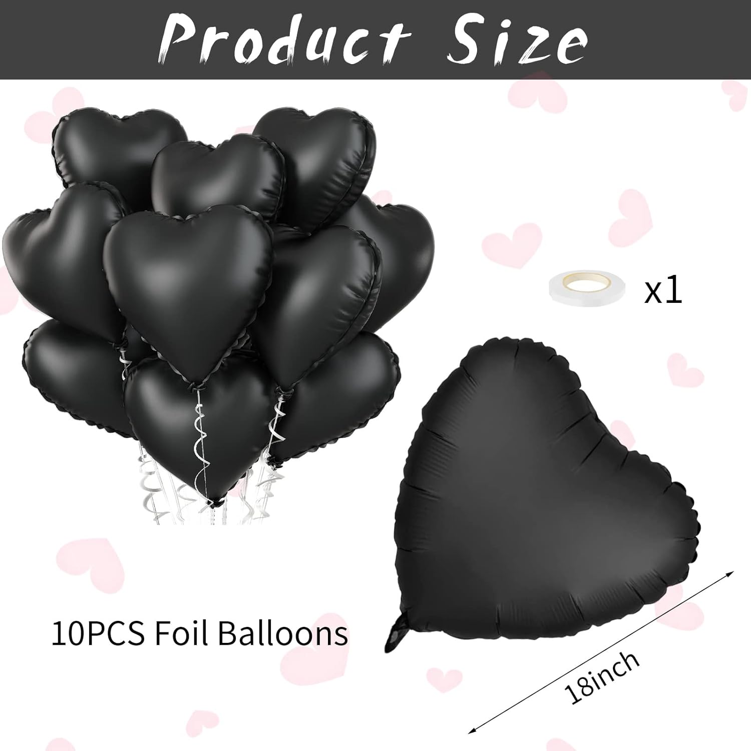 - 💖 10 PCS BLACK FOIL HEART BALLOONS: Package contains 10 x 18 inch black heart balloons, 1 x 10m ribbon.The black heart shape balloons are specially shaped, the perfect size for your holiday or party decorating needs, together create a fun and surprising party, leave an unforgettable smile!