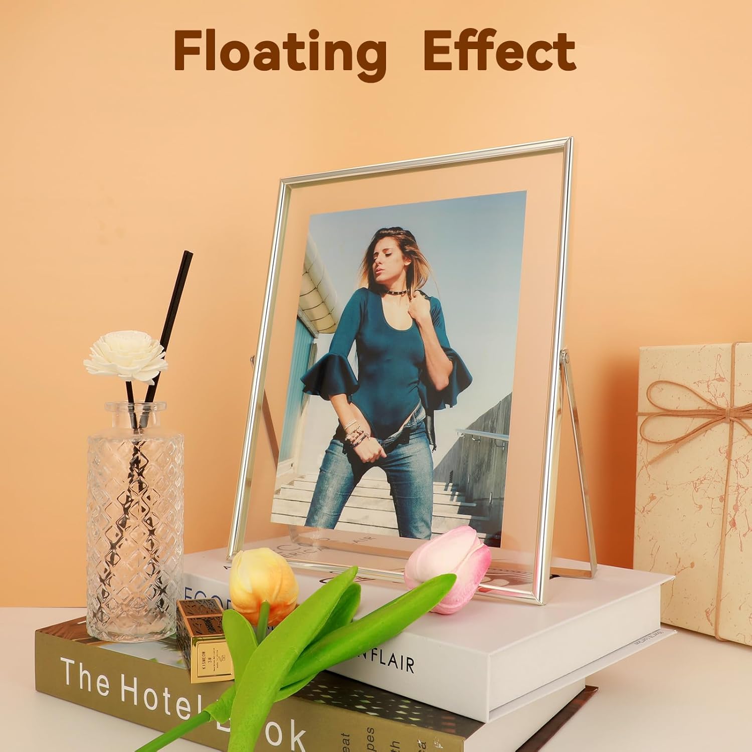 Silver Floating Frame (8"x10", Vertical), For Picture 7x9, 6x8, 5x7, Tabletop Shelf Photo Frame, Classy Gift For Graduation Commemoration, Birthday or Wedding