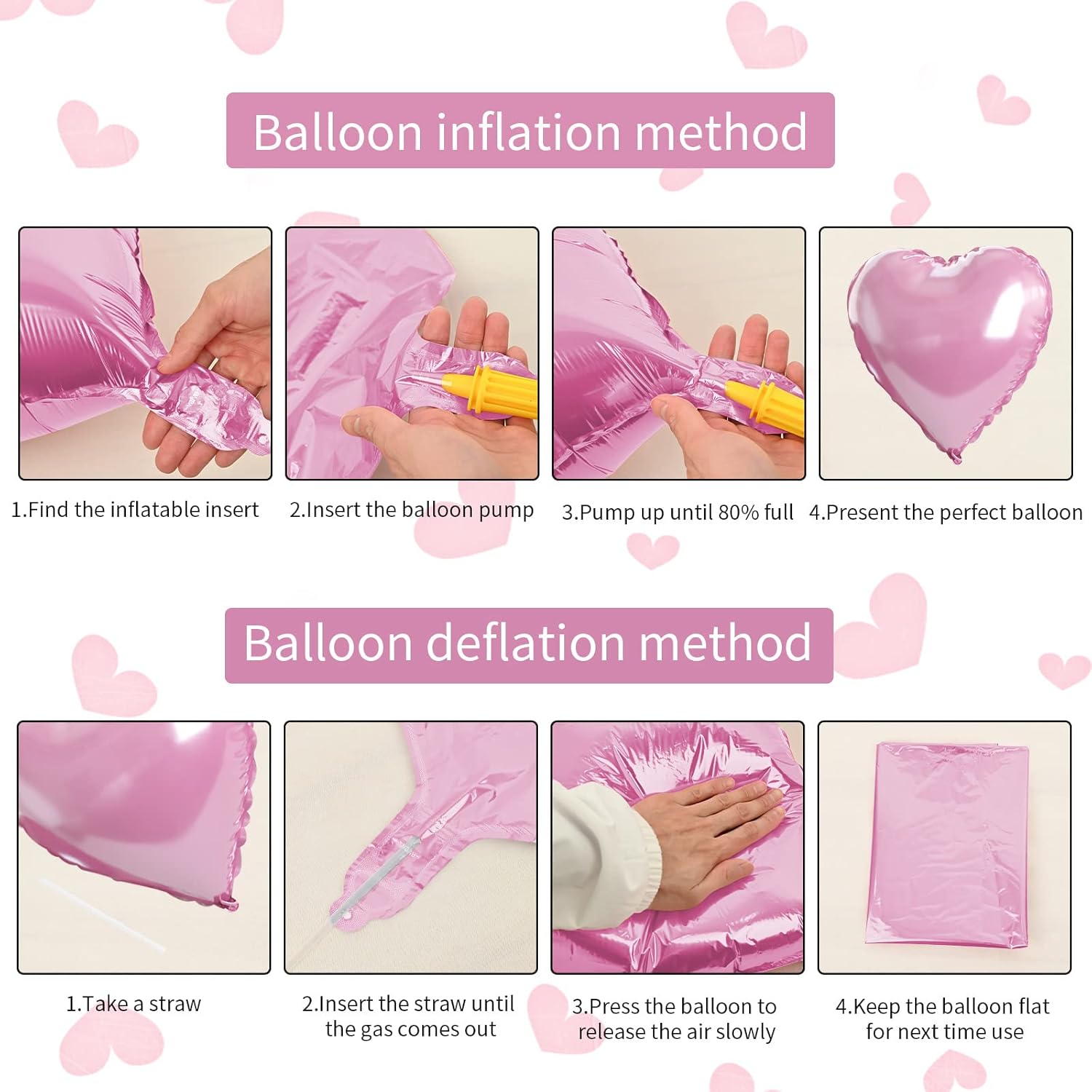 - 💖 Easy To Use: These pink heart shaped birthday balloons can be filled with air or helium (inflate to 85%-90%, to prevent it from becoming too large and exploding). The valve seals automatically when inflated, and the gas inside can be emptied with a plastic straw, making them reusable. The set also comes with 10 meters of ribbon, making it easy to decorate your room for your children and spouse.
