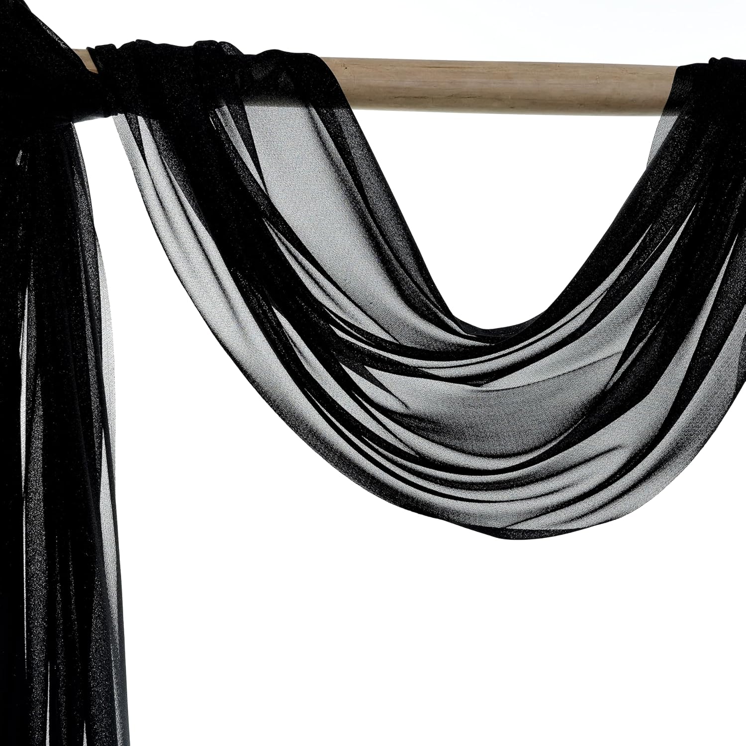 VDS Pack of 1 Panel (30 Inch X 30 Feet) Wedding Arch Draping Fabric Sheer Chiffon Fabric Drapery for Wedding Ceremony Reception Swag Backdrop Canopy Chuppah ARBO Altars Decoration (Black)
