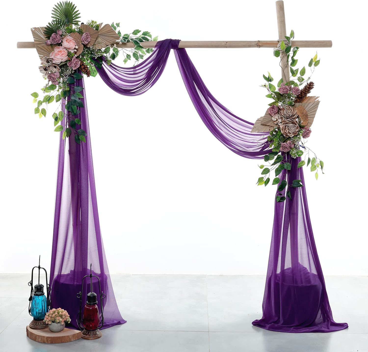 VDS Pack of 1 Panel (30 Inch X 30 Feet) Wedding Arch Draping Fabric Sheer Chiffon Fabric Drapery for Wedding Ceremony Reception Swag Backdrop Canopy Chuppah ARBO Altars Decoration (Purple)