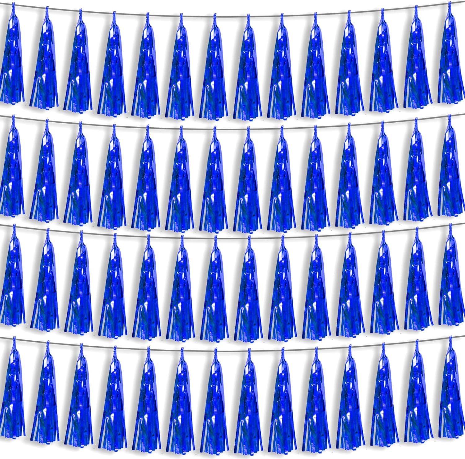 4P Blue Foil Fringe Metallic Tassel Streamers Banner Tassel Garland for Parade Floats, Bachelorette, Wedding, Birthday, Halloween, Christmas, Bridal/Baby Shower Party Decorations