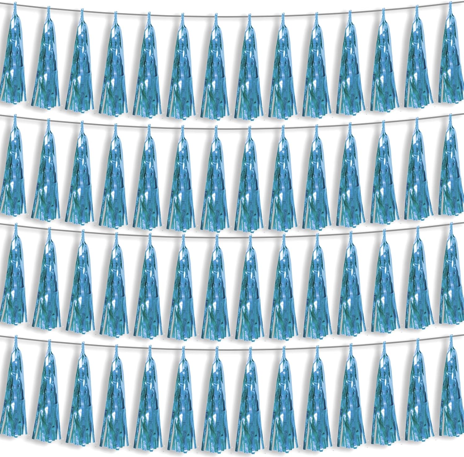 - 【Perfect Party Decoration】The light blue tinsel garlands are designed in a metallic Fringe, bright, and beautiful, at the same time, they shine in the sun, and these gorgeous tassel garlands create a wonderful backdrop or centerpiece for your party space. and bring you, your family, and your friend's good Visual effects. your party many emotional and touching moments where a lot of pictures will be taken and everybody will have a wonderful time together.