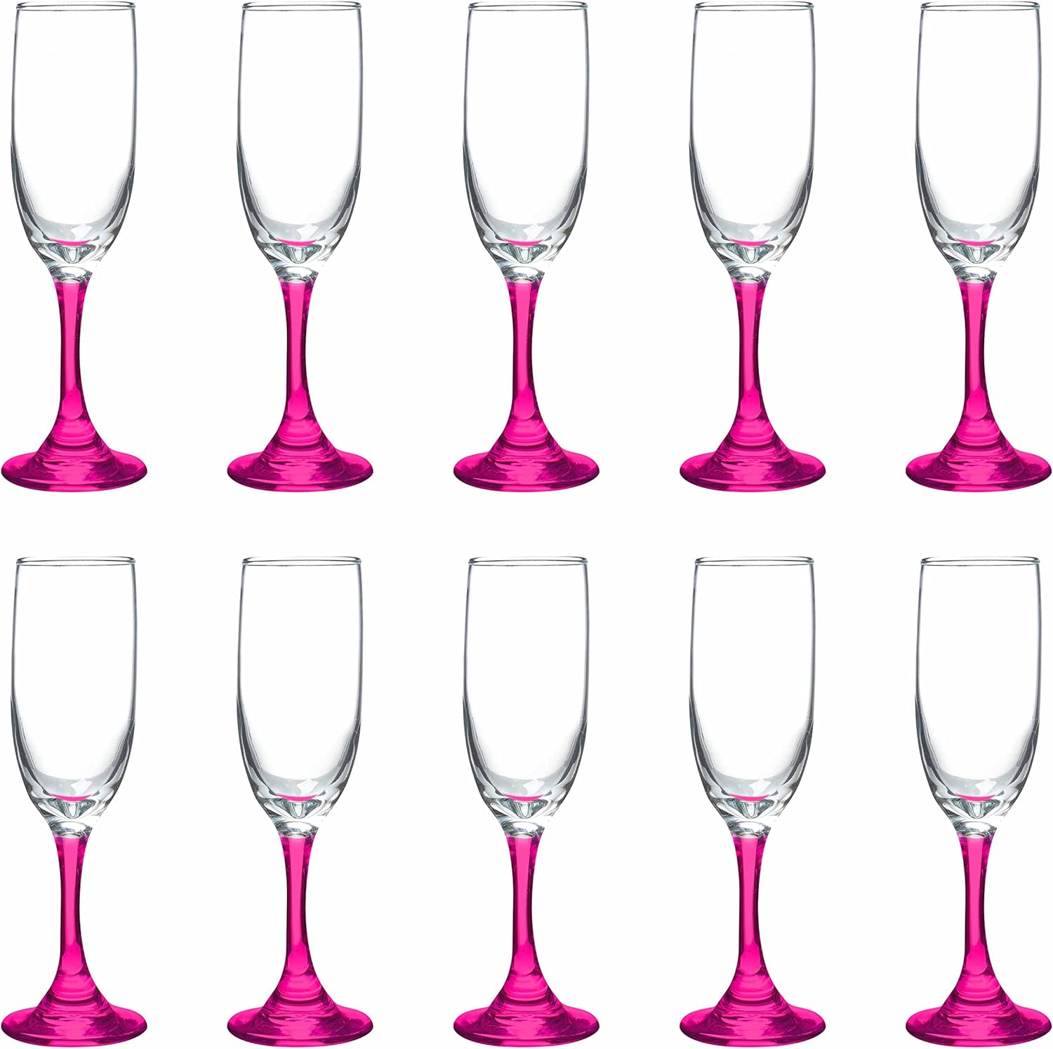 DISCOUNT PROMOS Premiere Champagne Flutes 6.25 oz. Set of 10, Bulk Pack - Elegant Drinkware for Weddings, Events, & Promotional Gifts - Pink