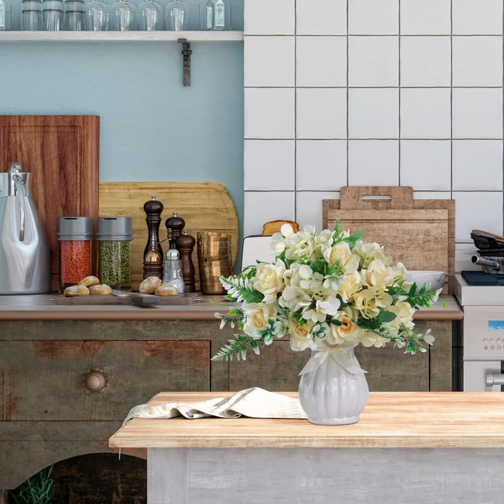 - [ PACKAGE]: 4 bunch rose hydrangea with ceramic vase, suitable for living room, table ceterpieces,farmhouse decoration, party decoration and other events decoration.