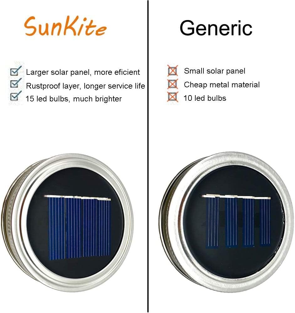 - ✨WHAT YOU GET - Pack of 12 units of SunKite Mason Jar LED String Lights Lid with 12 hangers. A very Good Deal to order. LED lights can last 50,000 hours under regular using,