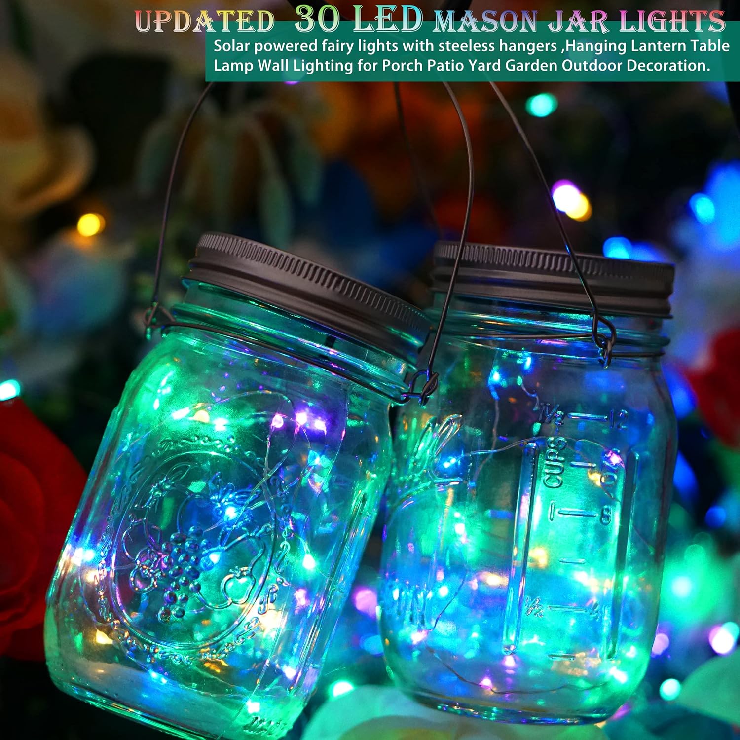 SunKite Solar Mason Jar Lights, 12 Pack 30 LED Waterproof Fairy Firefly Jar Lids String Lights with Hangers(NO Jars), Patio Yard Garden Wedding Decoration - Multicolored1