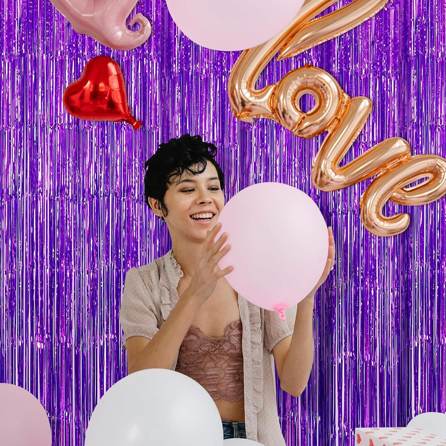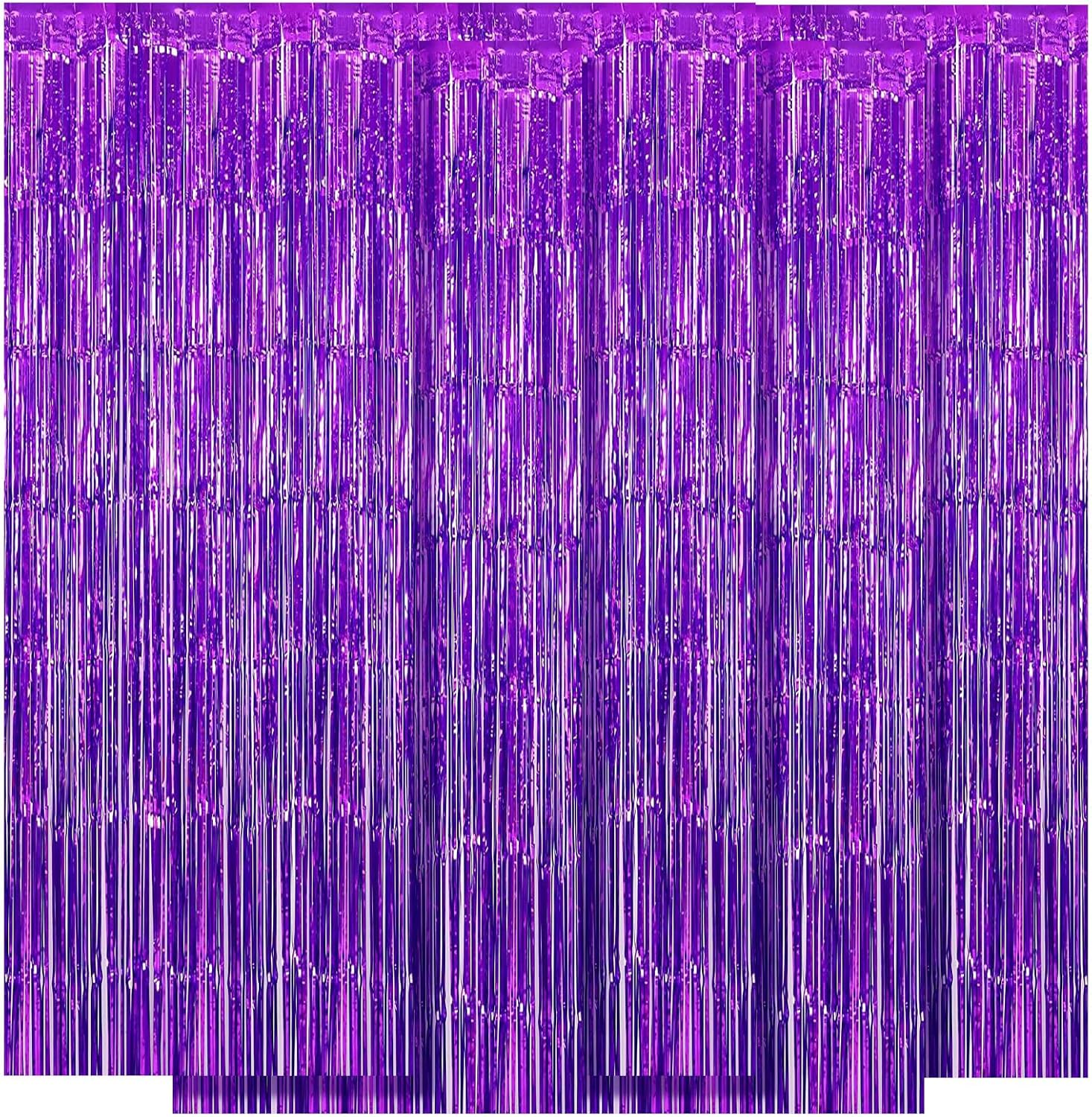 5 Pack Purple Fringe Backdrop 3.2ft x 8.2ft Foil Curtain Tinsel Foil Fringe Curtains Backdrop Tinsel Backdrop Streamers for Birthday Curtain Party Decoration Wedding Christmas Decoration (Purple)