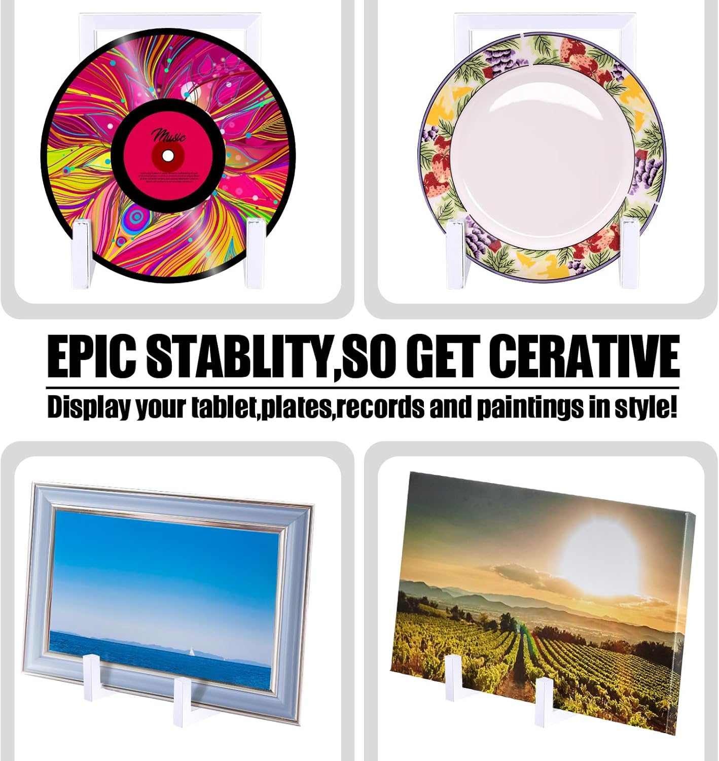- Industrial Style: as you can see in the pictures, our picture frame holder stand comes in white color, presenting a modern and industrial visual effect; Meanwhile, they adopt geometric lines and shapes, smooth and simple, adding a sense of aesthetic beauty to your tabletops and shelves