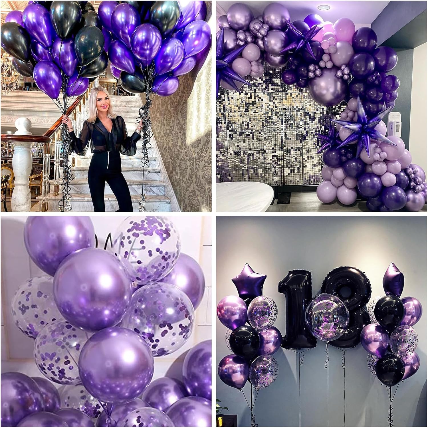 - ✨ Purple Black Balloons: Our package includes 30pcs 12inch latex balloons (10pcs black balloons, 5pcs metallic purple balloons, 5pcs purple confetti balloons, 10pcs dark purple balloons) and 1pc balloon ribbon. Perfect for upscale events, birthday, or any occasion where elegance is key. Elevate your decor with these sleek and polished black lilac balloon that will leave a lasting impression on your guests.
