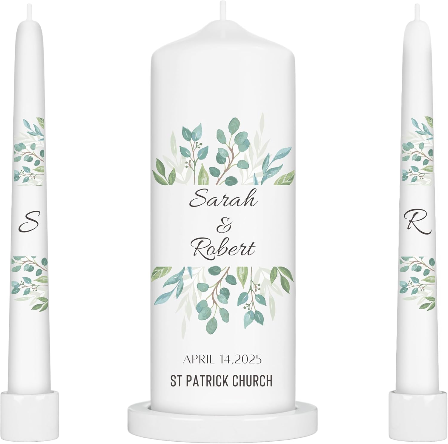 Unity Candles for Wedding, Modern Unity Set, Custom and Personalized Pillar and Taper Candles, Unscented White Premium Wax, Religious and Wedding Ceremony, Special Events (Olive)