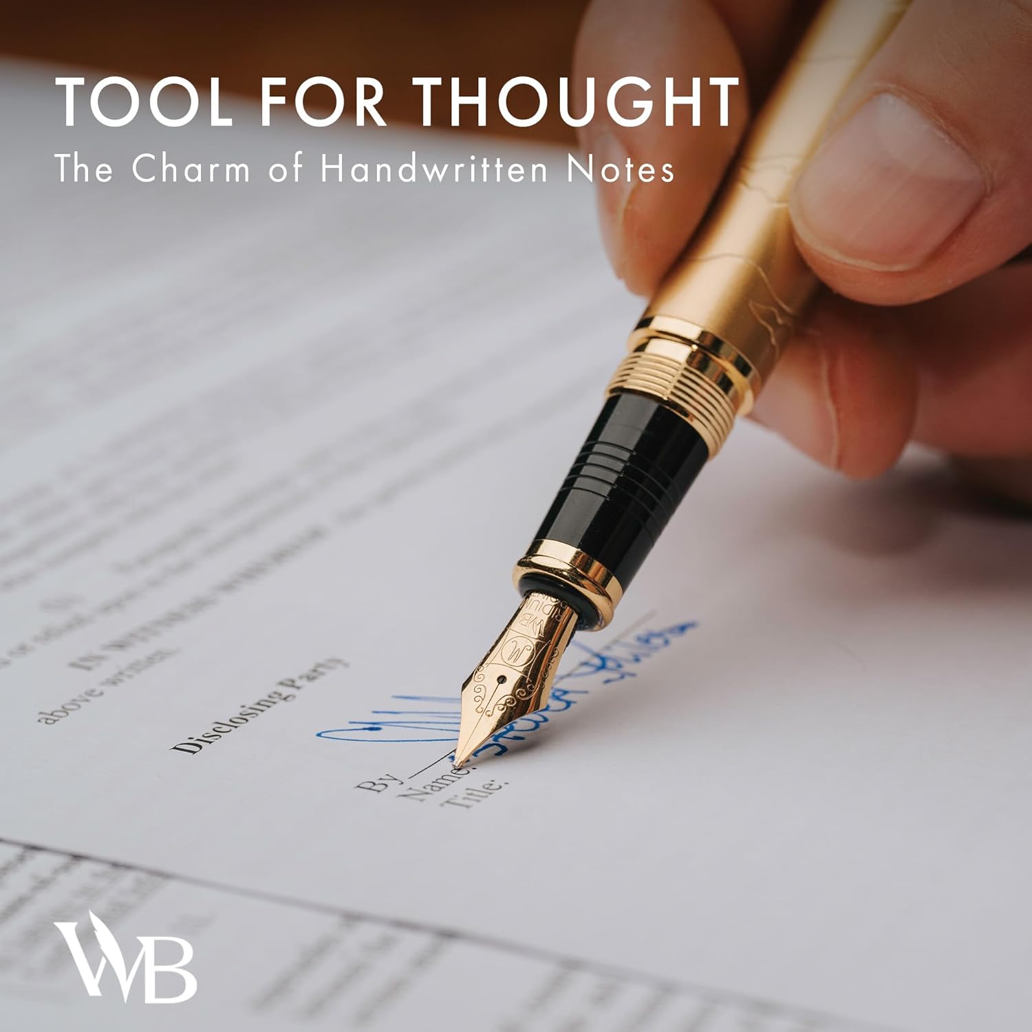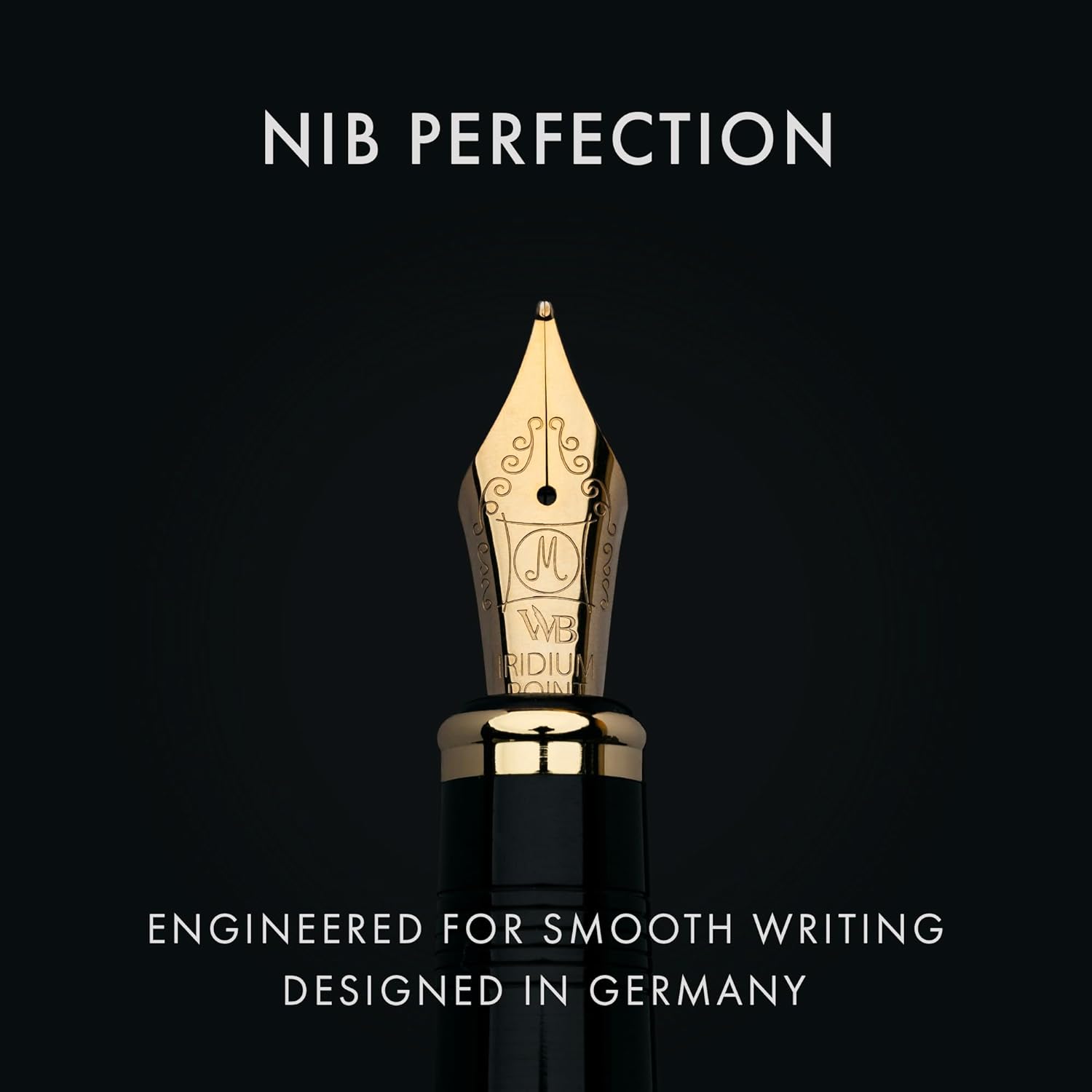 Wordsworth & Black Primori Fountain Pen Set [Stunning Gold]; Medium Nib, Gift Case, 24 Ink Cartridges, Refill Converter, Manual; Journaling, Calligraphy, Smooth Writing Pens; Left and Right Handed