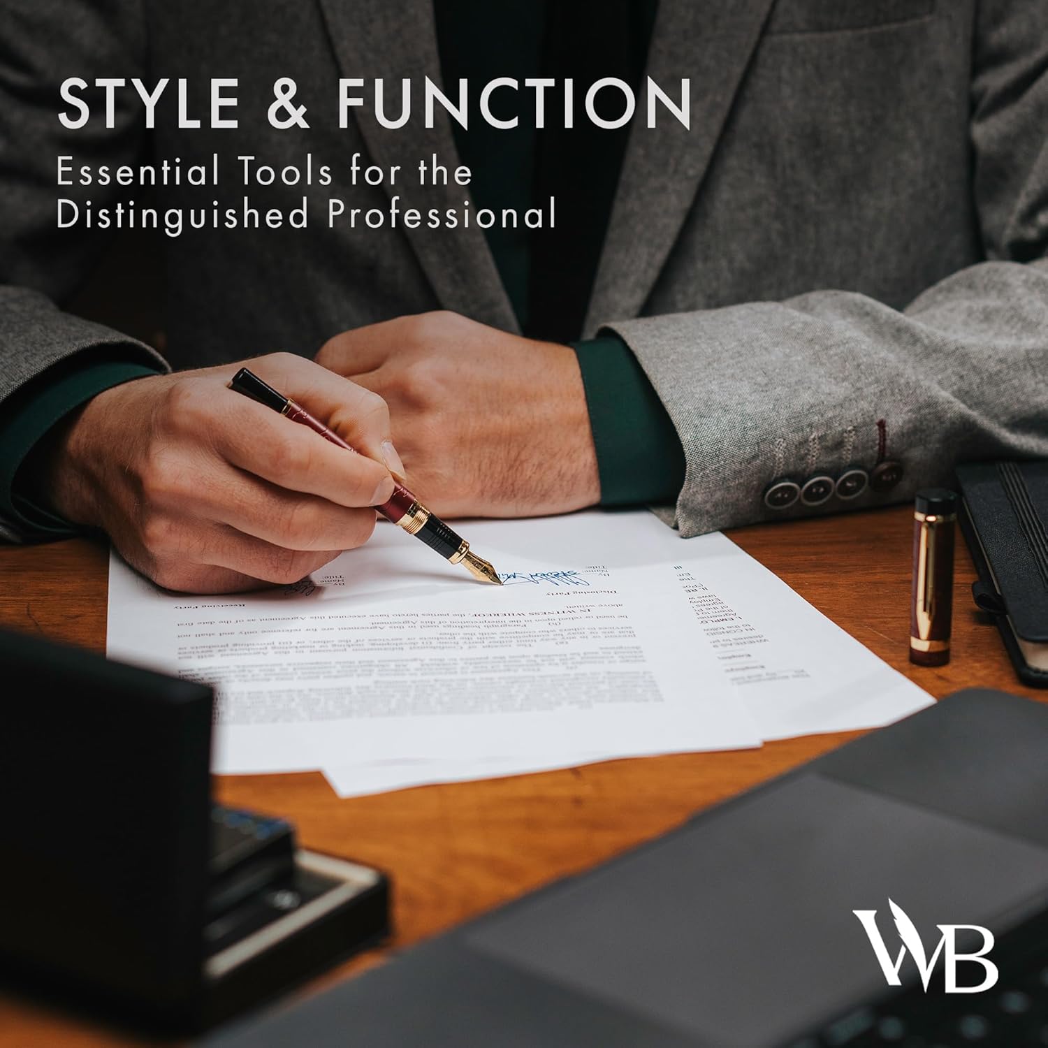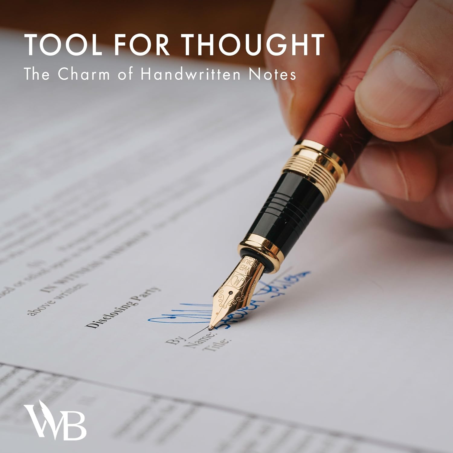 Wordsworth & Black Primori Fountain Pen Set [Red Gold]; Medium Nib, Gift Case, 24 Ink Cartridges, Refill Converter, Manual; Journaling, Calligraphy, Smooth Writing Pens; Left and Right Handed