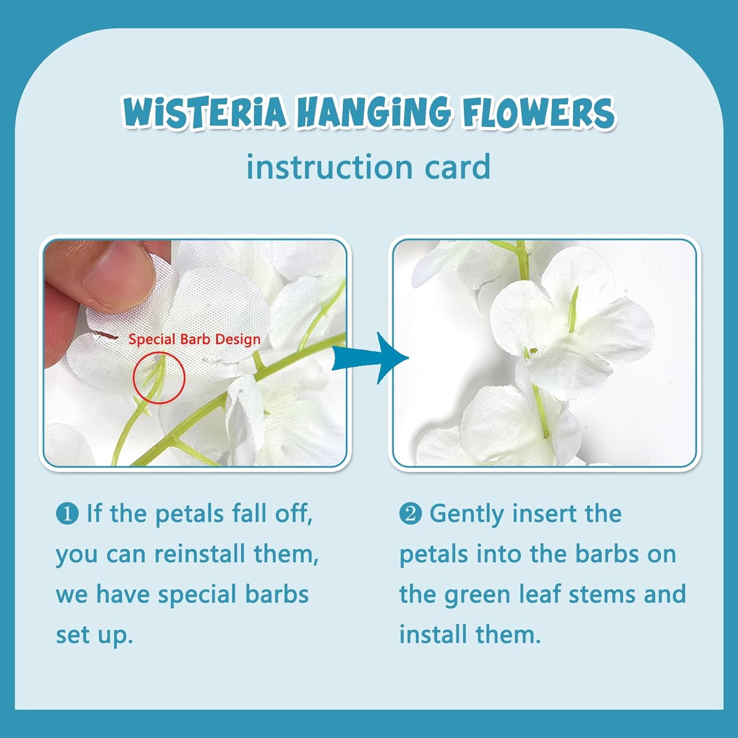 - 【Easy to Install】The lake blue wisteria flower stem is made of durable metal wire and covered with plastic. You can bend the wisteria flower in any shape to satisfy your decoration imagination without damaging it. And the wisteria flower is very easy to install and remove, you can reduce a lot of troubles on installation.